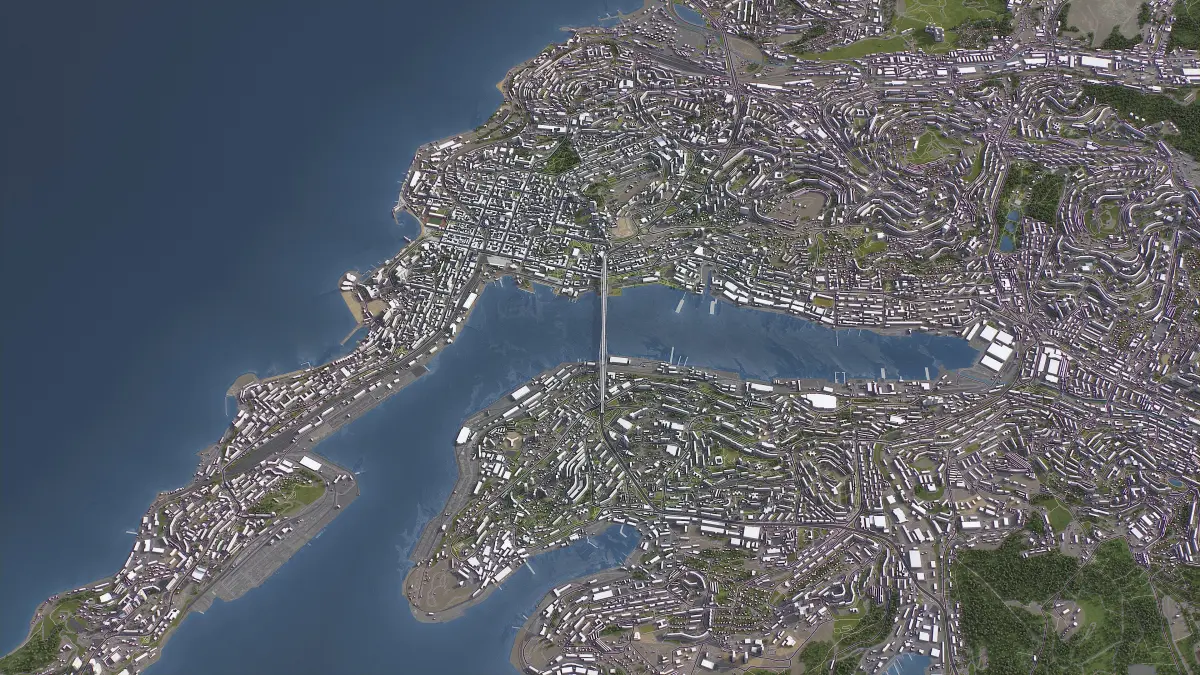 - Integrated Urban Features — Custom placement of buildings, roads, and vegetation on the terrain