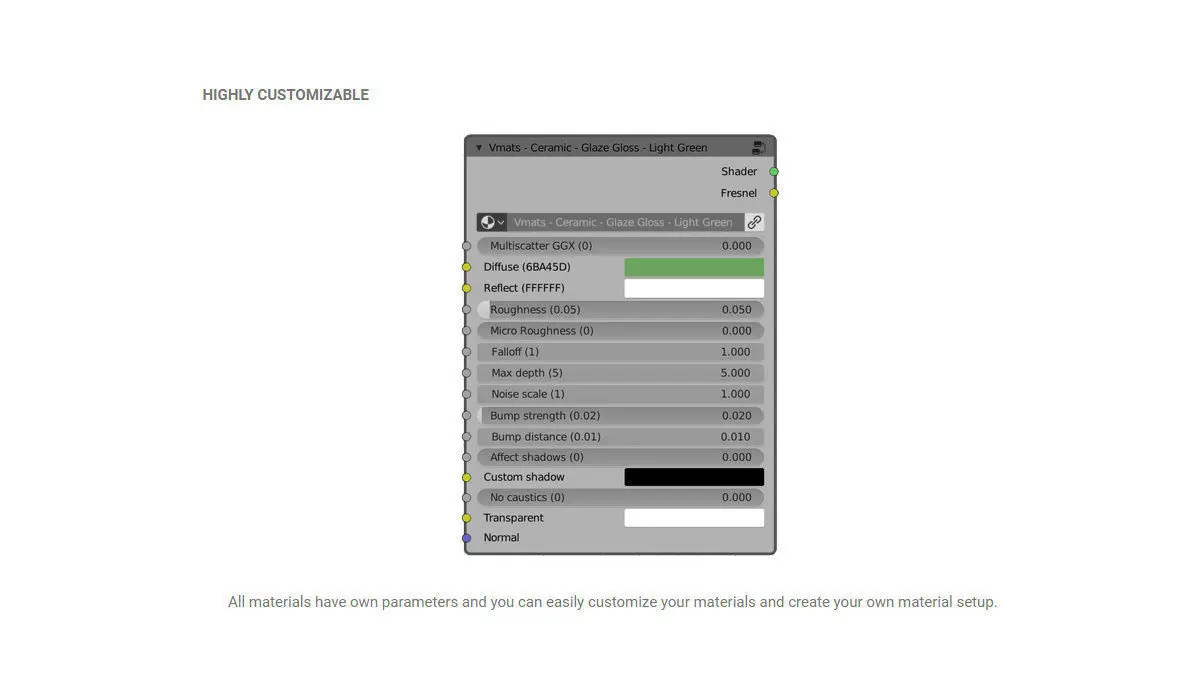 All available materials have their unique parameters for easy identification and also you can easily customise a material.