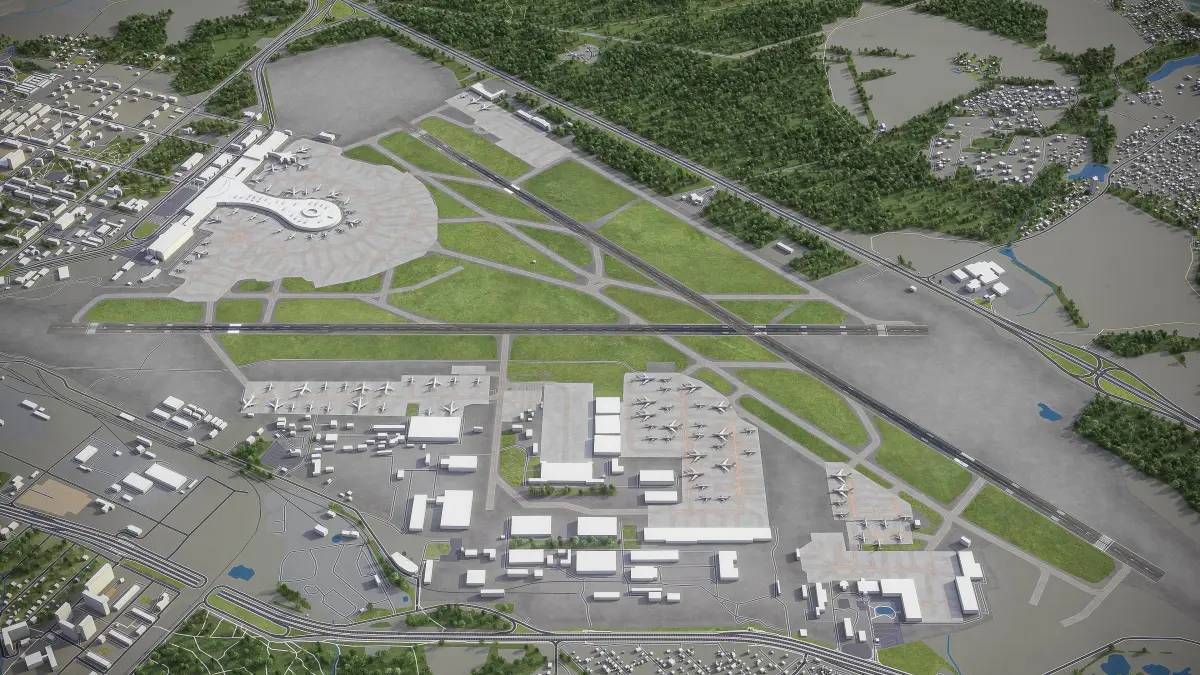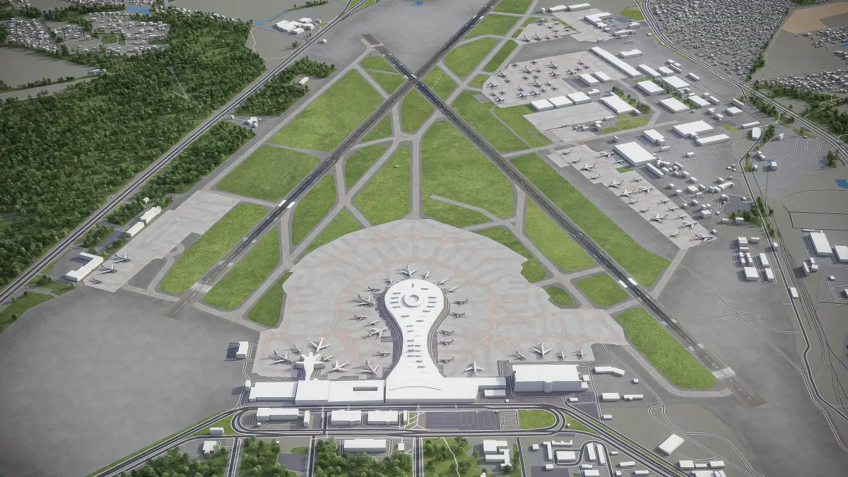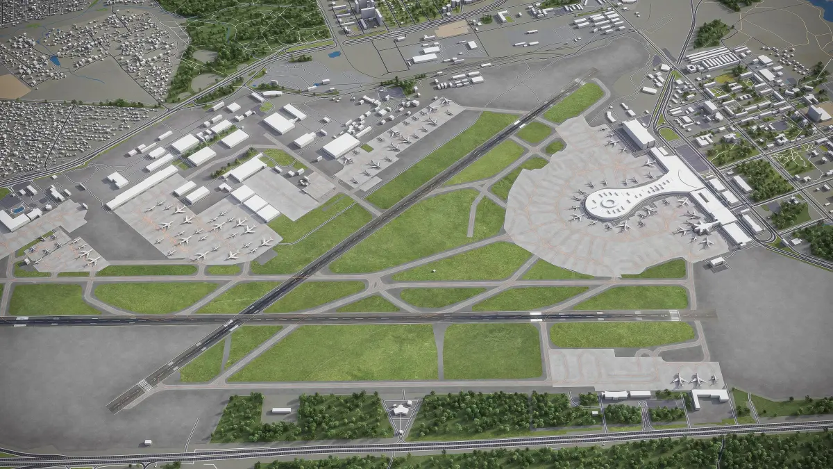 - Trees, vegetation, land-use and airport surface with the textures assigned