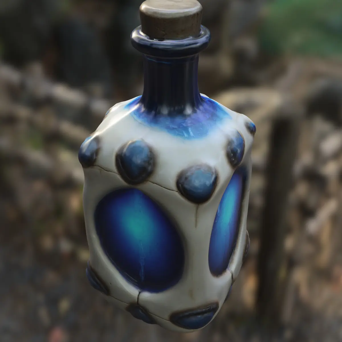 A stylized 3D model of a sealed mana flask, featuring a glowing blue core protected by bone-like shell segments and vein-like detailing. Ideal for use in fantasy, dark magic, or sci-fi settings in popular games such as Genshin Impact, Skyrim, Dark Souls, Diablo IV, or Final Fantasy. This versatile asset can be used as a magical consumable, quest item, or environmental prop. Comes in OBJ, FBX, STL, DAE, PLY, and GLB formats for easy integration in game engines like Unity and Unreal Engine. Also prepared for high-quality 3D printing as a physical collectible or cosplay item.