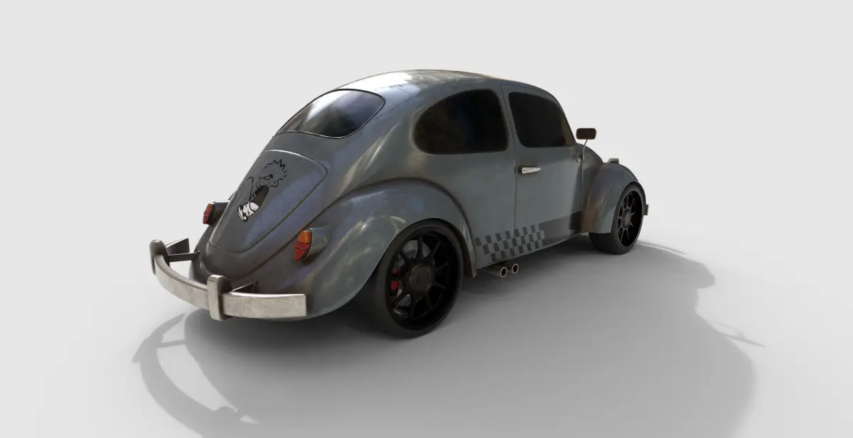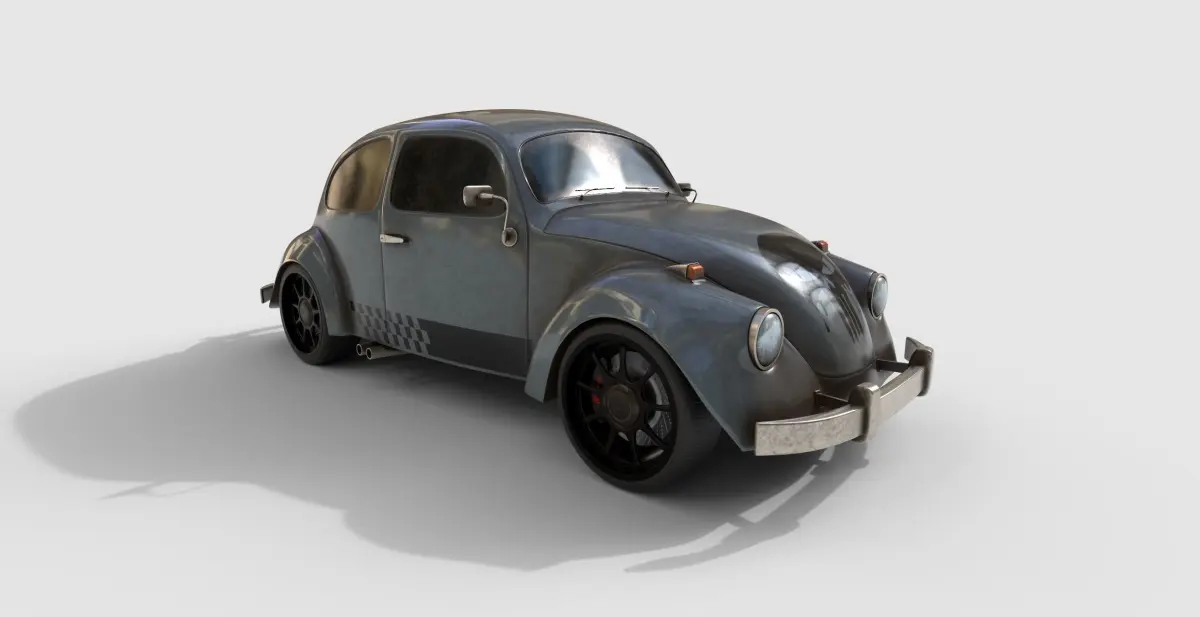 3D model car - Volkswagen Punisher, modeling in Blender, texturing in Substance Painter, archive include - lowpoly, and highpoly model, blend file, STL file, textures, images. bake files
