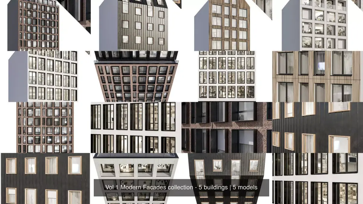 Vol 1 Modern Facades collection - 5 buildings 3D Model Pack