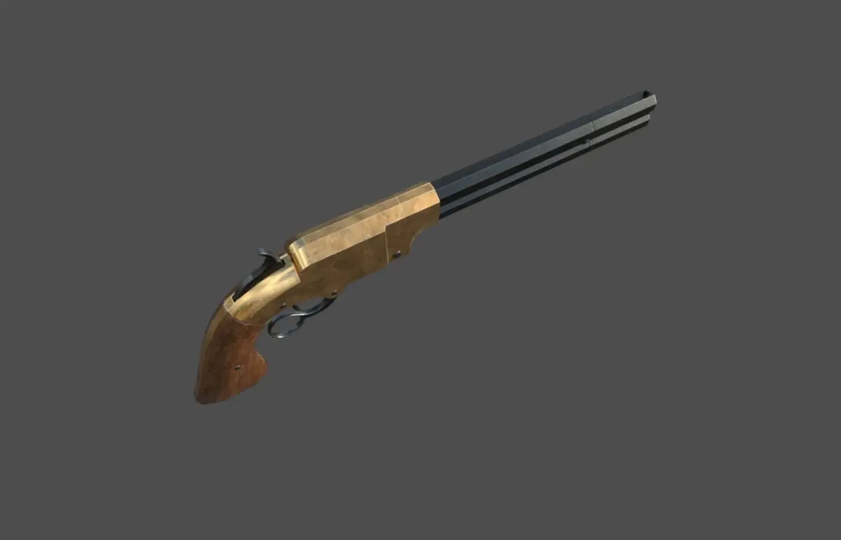 Repeating Pistol, completely UV mapped, made with 3dsMax 2018 ........................................................................................... The Volcanic Repeater is a very important gun in history, if relatively obscure. Based on the unsuccessful Volcanic Rifle, this was a lever-action pistol designed for target shooting.