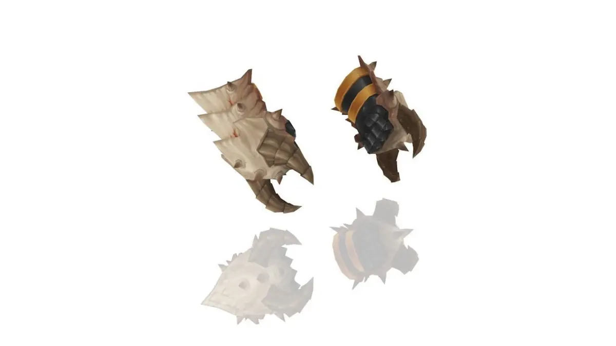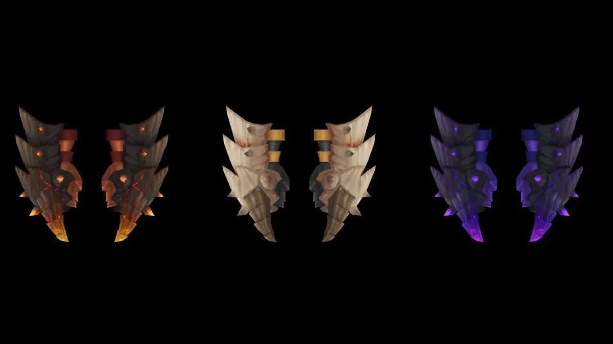 A set of battle-gloves in a volcano/demon style that comes with two variants.