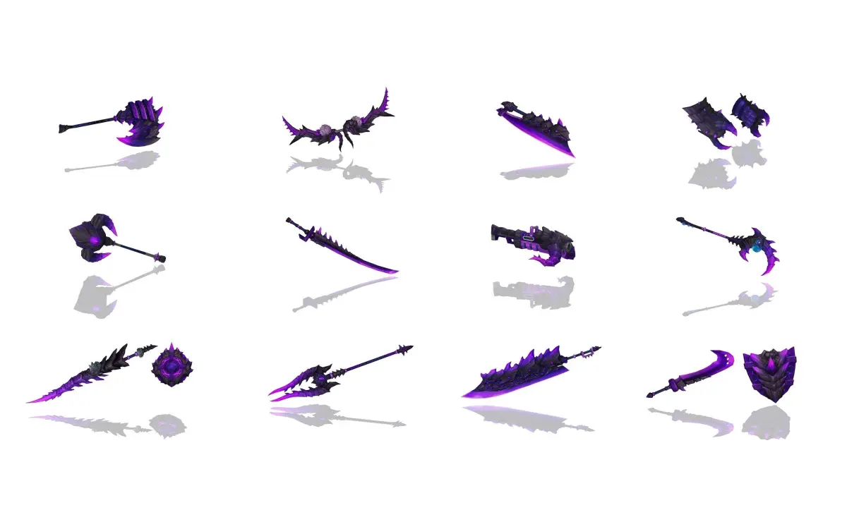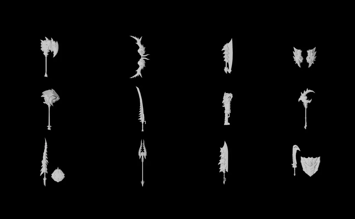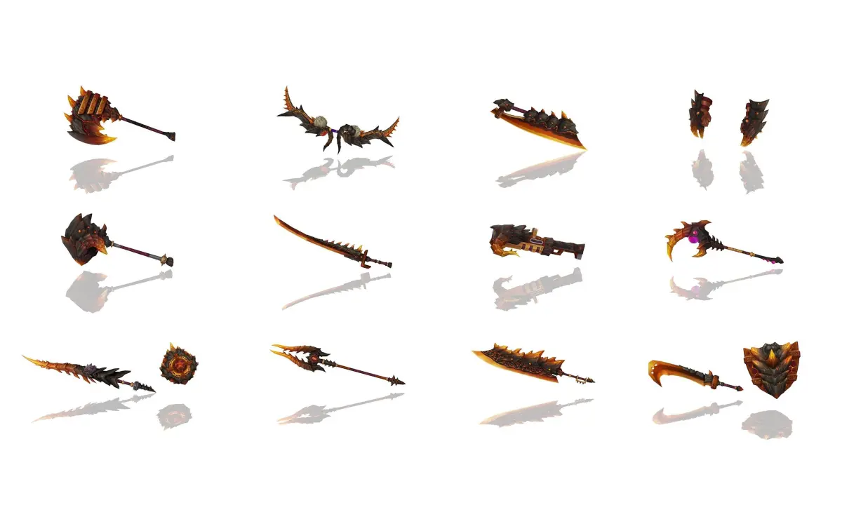 A pack of many weapons in a volcano/demon style.Each weapons comes with 3 textures.