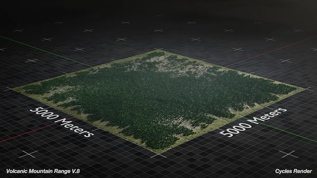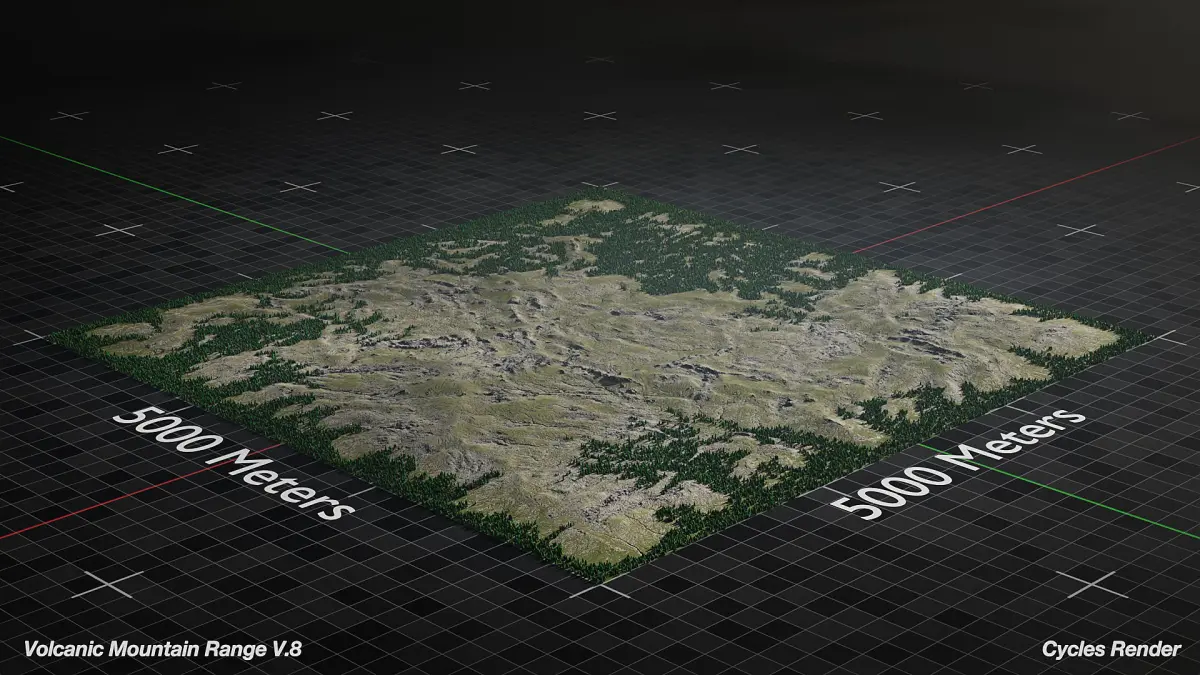 Optimized 3D Model of Large Volcano Mountain Range ready for Cinematics, Animations, and Games. This asset is native to Blender and Unreal Engine 5. This asset is based on a 5000x5000 km area but can be scaled to fit your needs and is meant for medium to far shots.