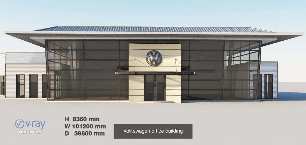 Volkswagen office building - model ready for rendering. Industrial style. Just paste in your project , especially for backgrounds - no need adjusting, cause not used textures