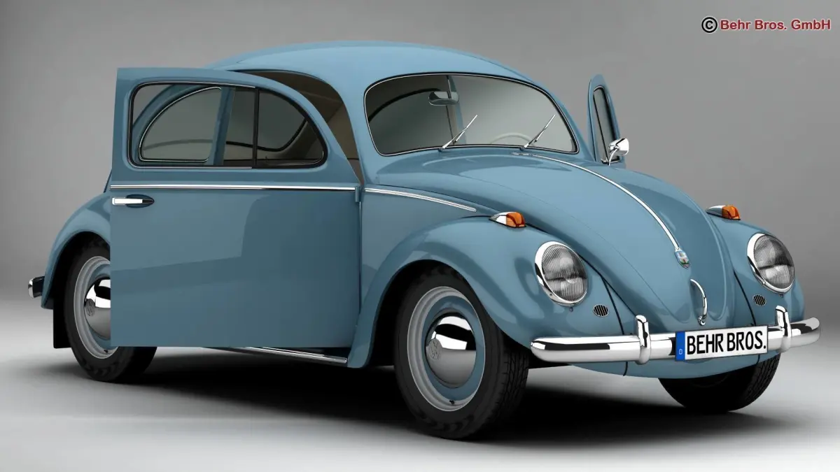 Accurate very high definition Volkswagen Beetle 1963 1200 Deluxe model with highly detailed interior fully textured. Headlights and taillights are modelled, doors can be opened. The model includes modeled tires.