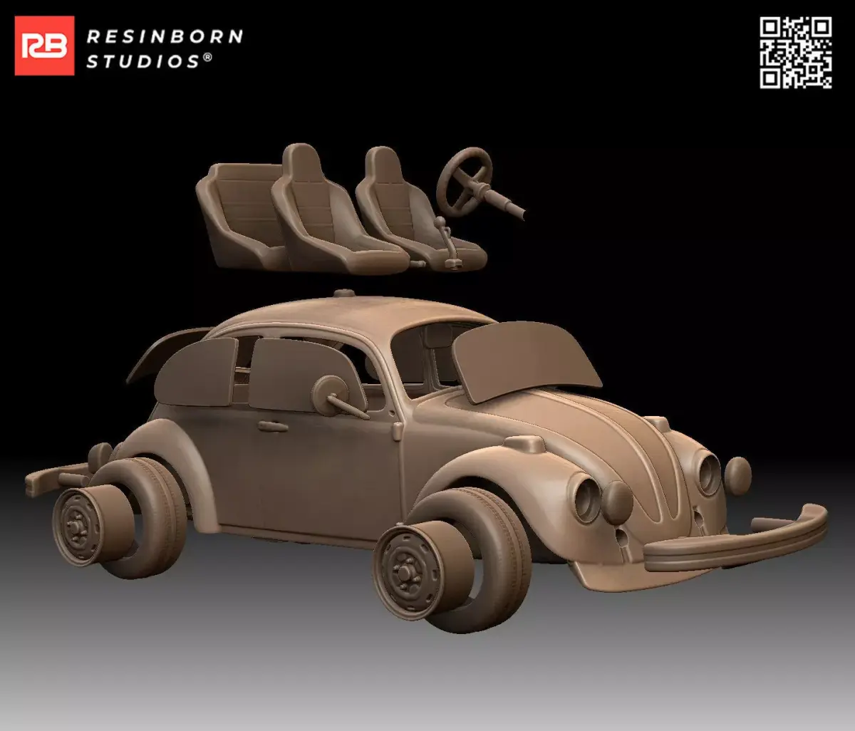 A fully detailed 1963 Volkswagen Beetle recreated as a multi-part 3D printable model kit. This sculpt features clean stylized lines, separated pieces for easy printing and painting, accurate curves, wheels, bumpers, doors, mirrors, and iconic Beetle shapes. Perfect for resin or FDM printers, collectors, model enthusiasts, and anyone who loves classic vintage cars.