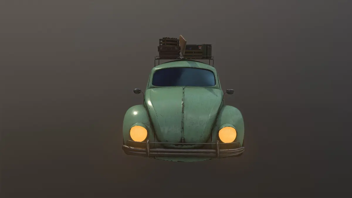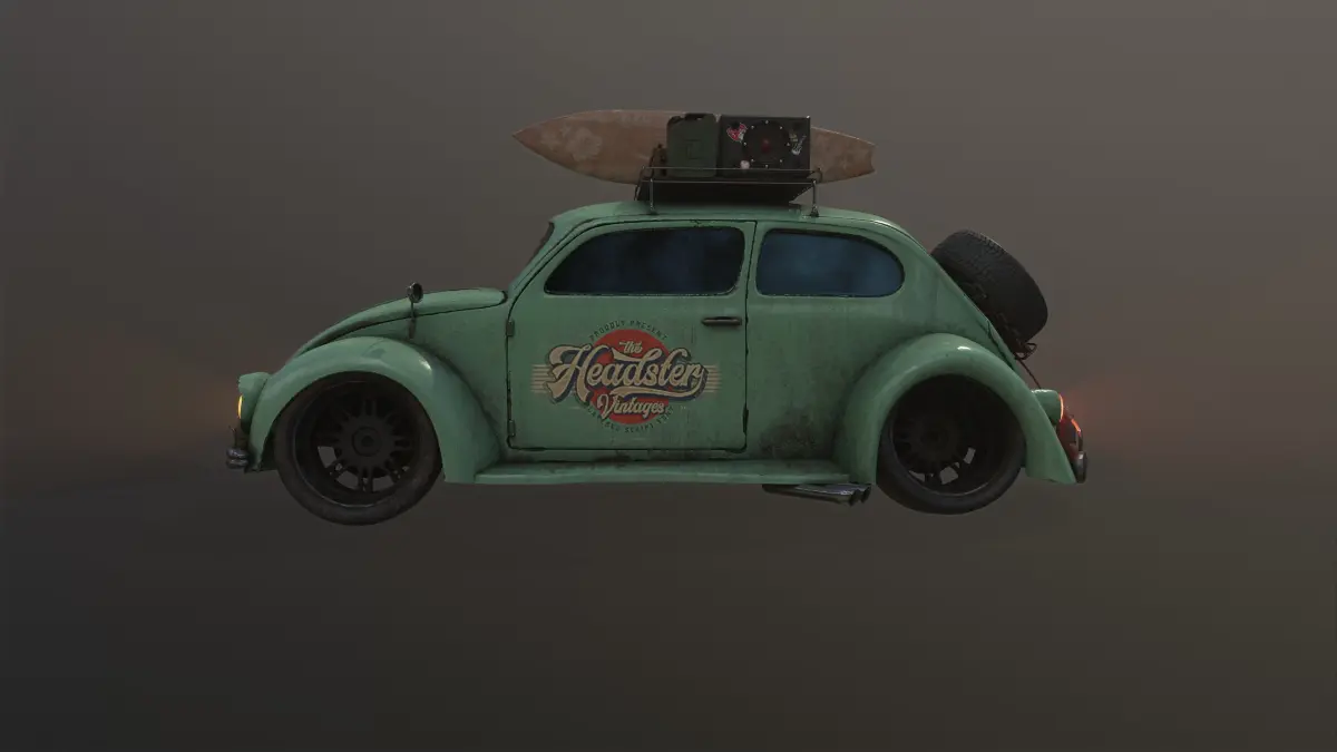 volkswagen beetle, old with a little tuning, the owner of this car is a surfer traveler, a lover of beer and music
