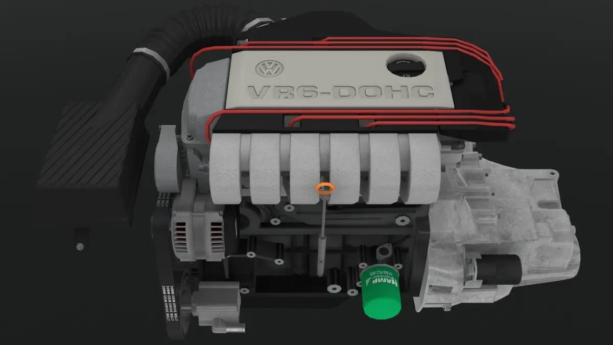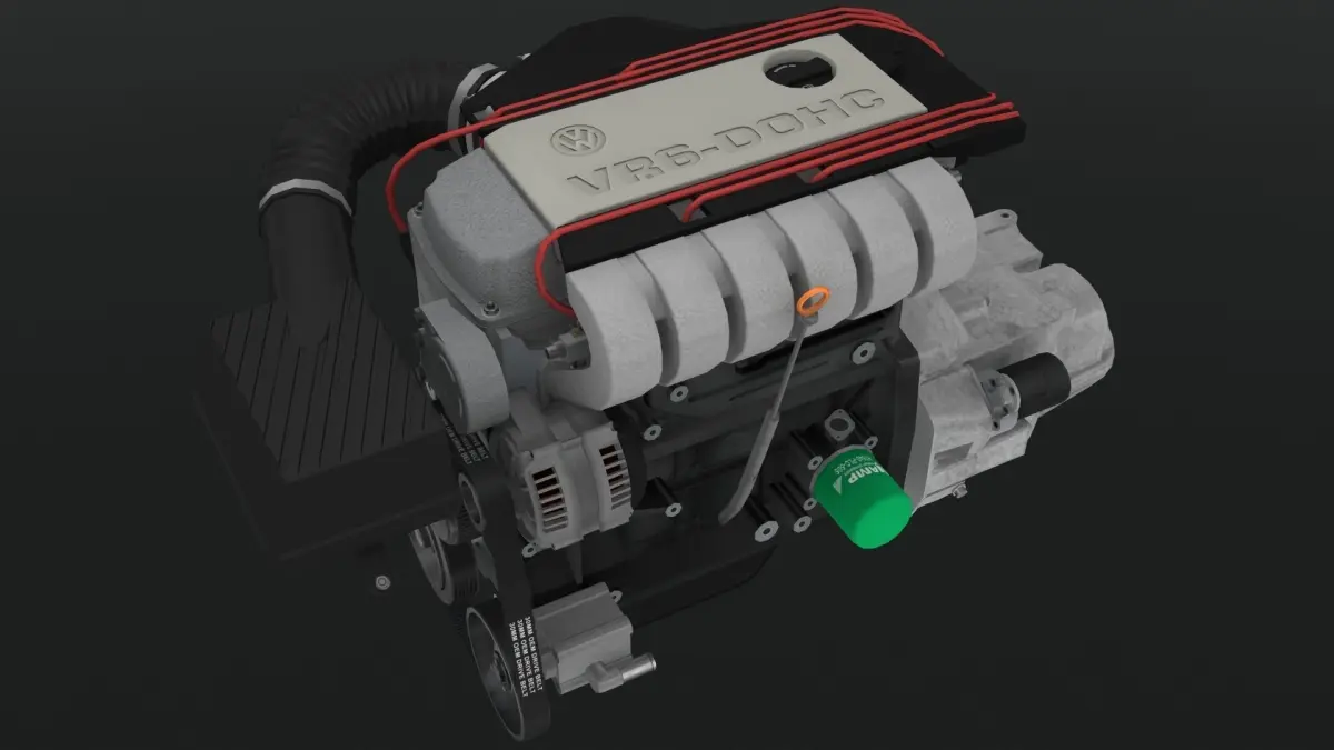 Detailed and realistic 3d model of a Volkswagen VR6 12v 2.8L engine.