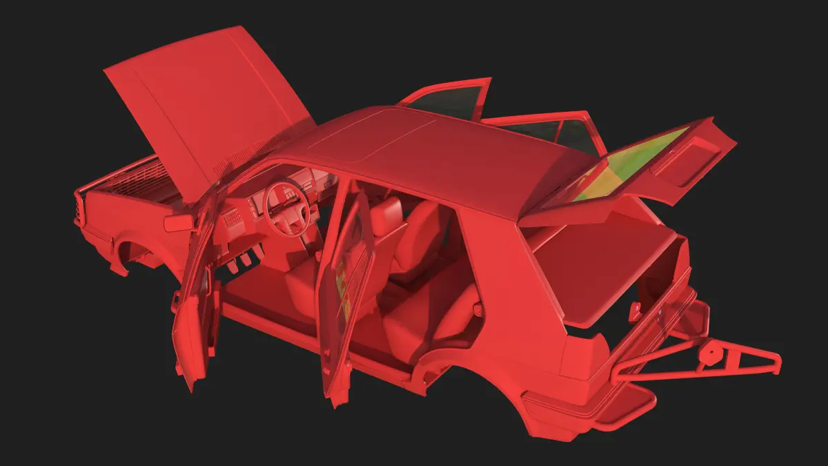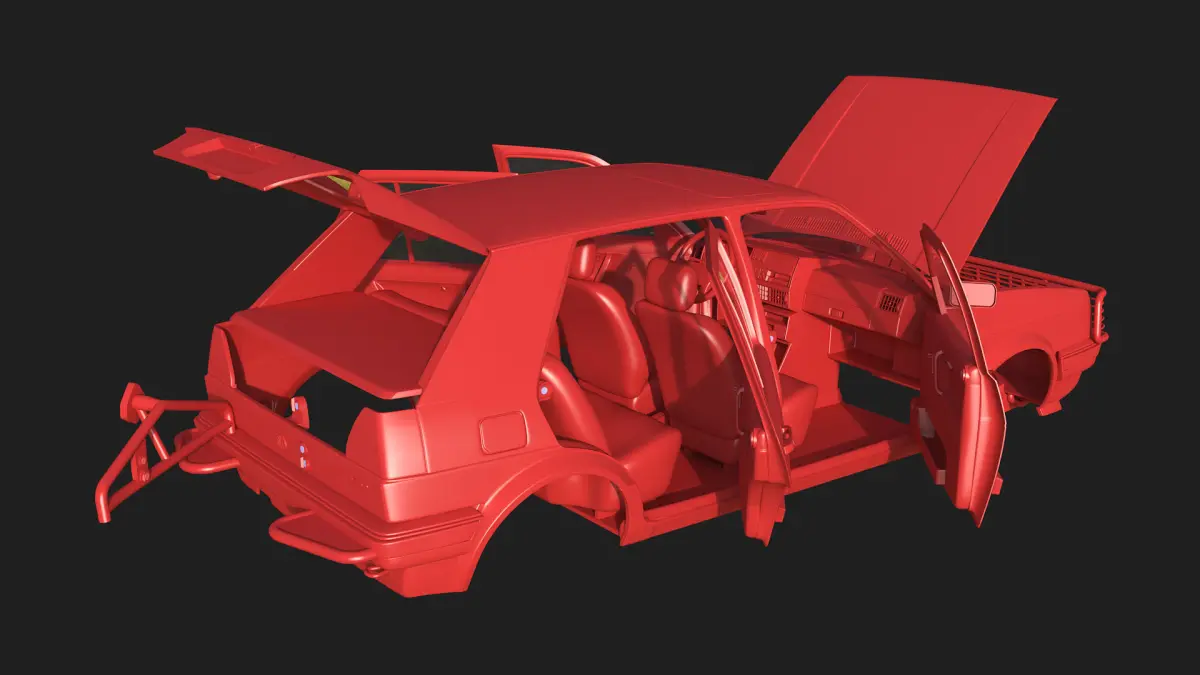 This is a 3D model of Volkswagen Golf II 'Country' version - body and interior - specifically designed for 3D printing.