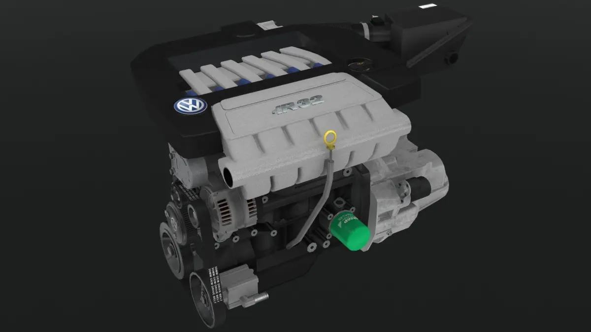 Detailed and realistic 3d model of a Volkswagen VR6 24v 3.2L engine.