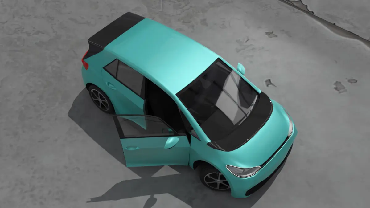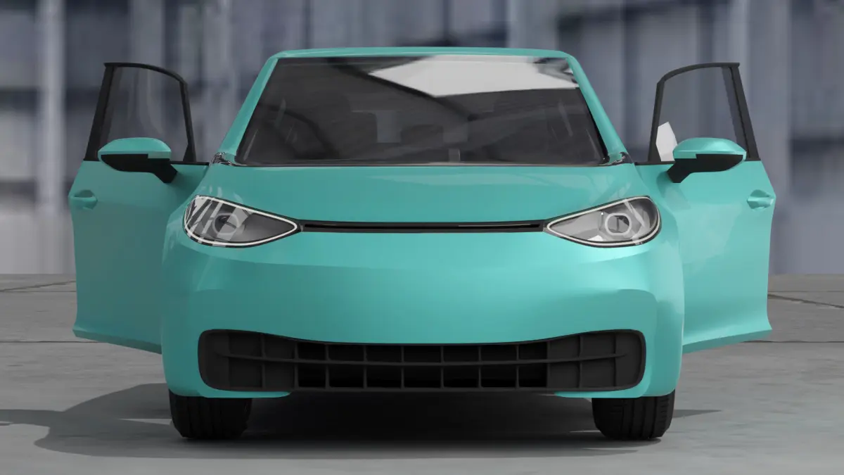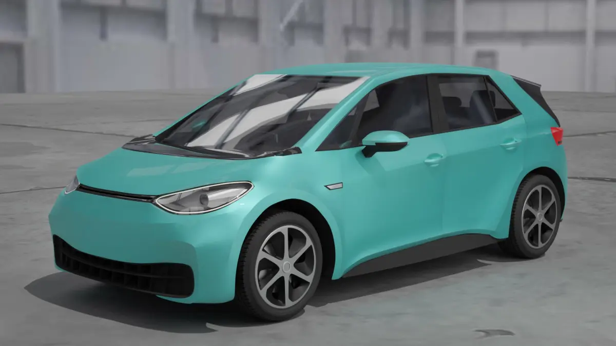 Simplified 3D model of german electric hatchback car (EV-vehicle).
