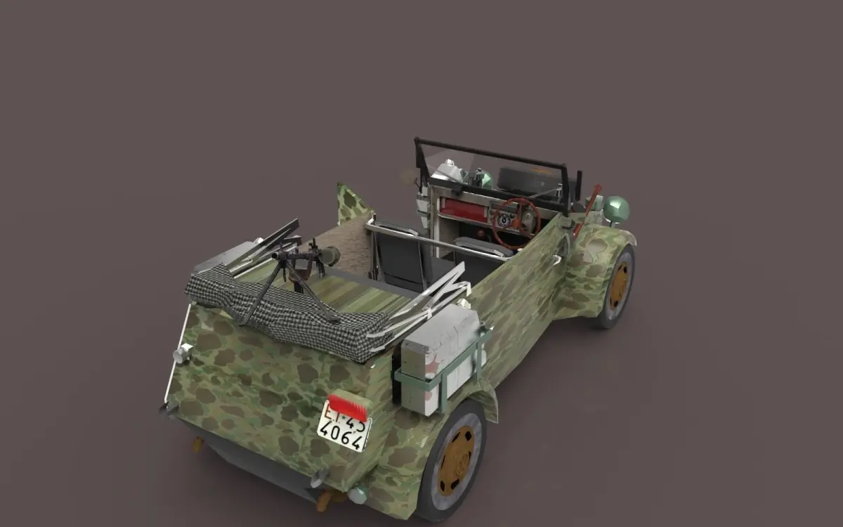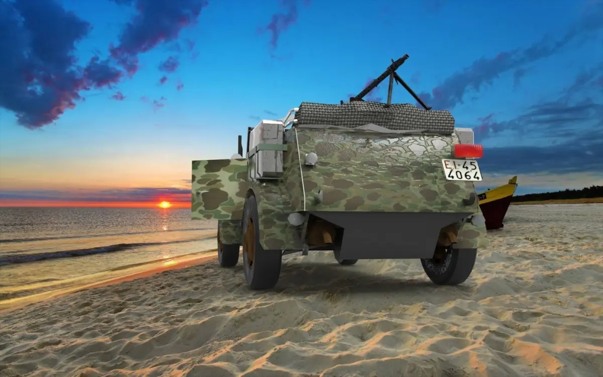 The Volkswagen Kübelwagen was a light military vehicle designed by Ferdinand Porsche and built by Volkswagen during World War II for use by the German military (both Wehrmacht and Waffen-SS).Based heavily on the Volkswagen Beetle, it was prototyped as the Type 62, but eventually became known internally as the Type 82.With its rolling chassis and mechanics built at Stadt des KdF-Wagens, and its body built by US-owned firm Ambi Budd Presswerke in Berlin, the Kübelwagen was for the Germans what the jeep was for the Allies.