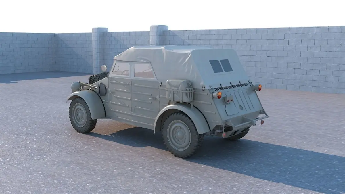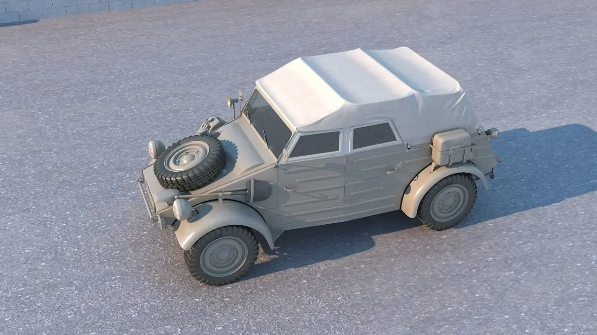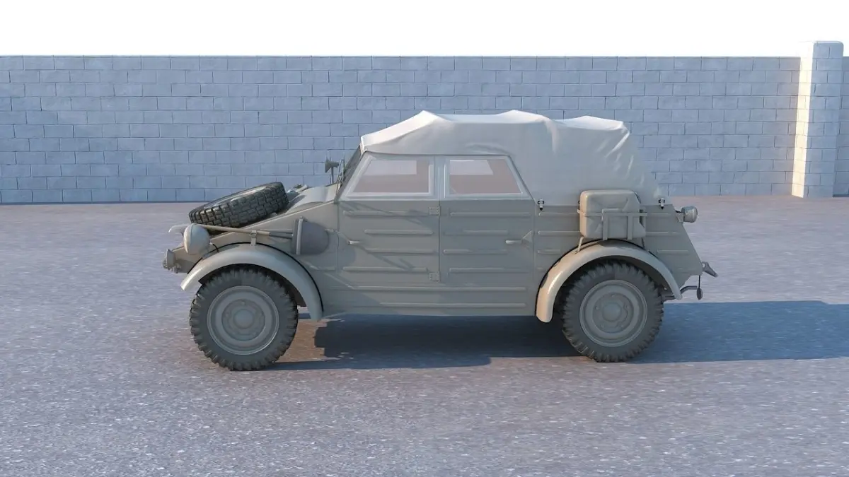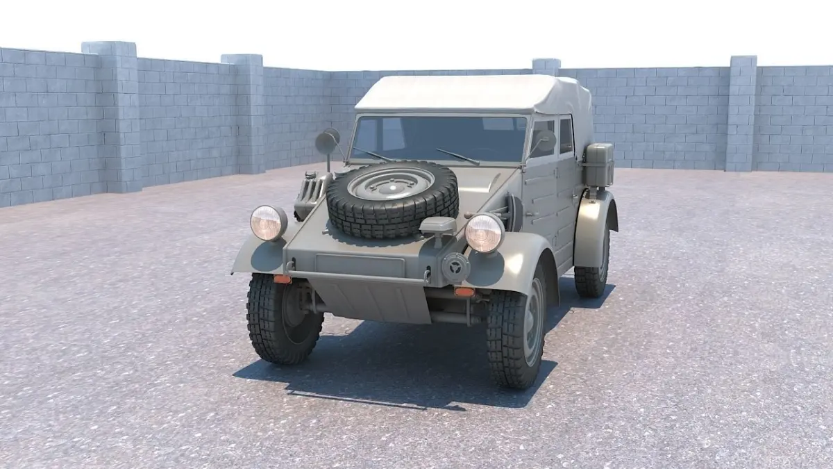 About:The Volkswagen Kubelwagen (literally, Tub car, previously mostly used for rail, industrial or agricultural hopper cars) was a light military vehicle designed by Ferdinand Porsche and built by Volkswagen during World War II for use by the German military (both Wehrmacht and Waffen-SS). Based heavily on the Volkswagen Beetle, it was prototyped as the Type 62, but eventually became known internally as the Type 82.