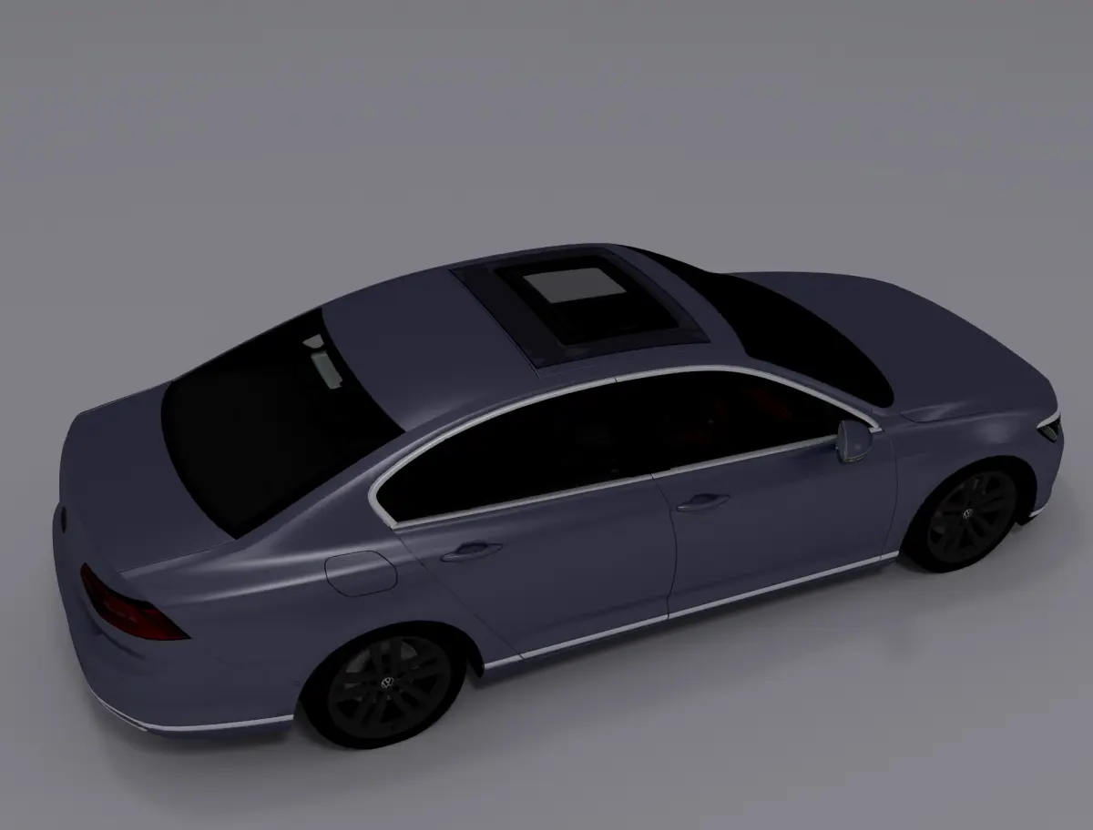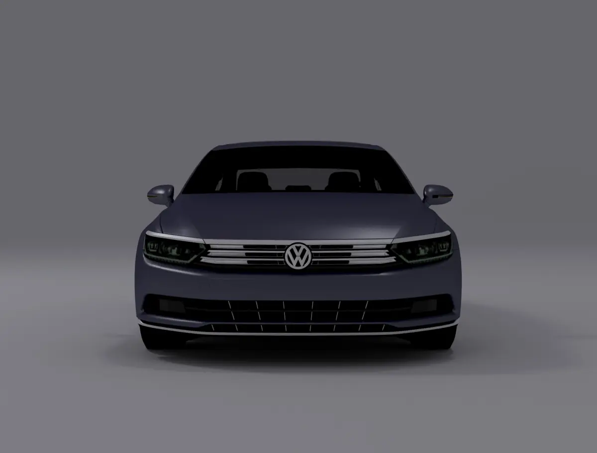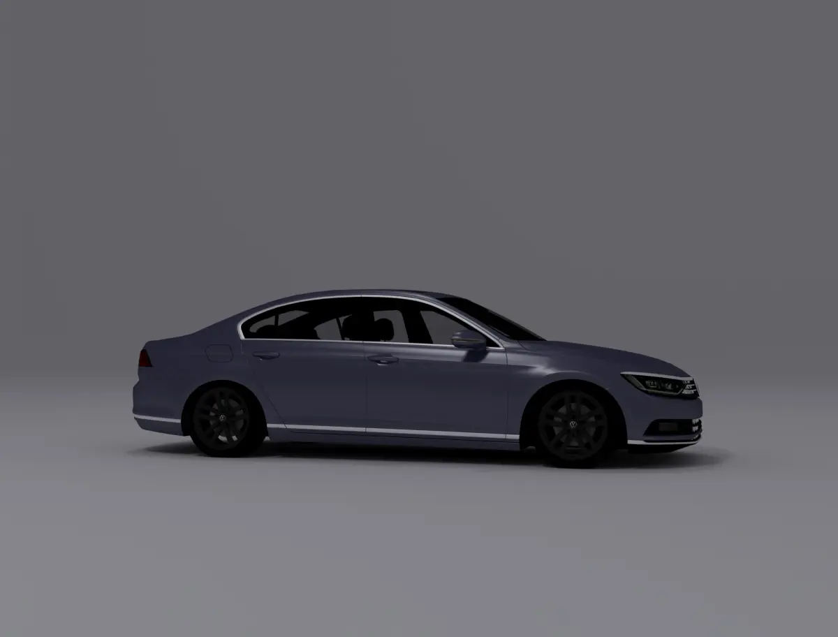 The Volkswagen Passat B8 model is created using original textures and materials. The model includes a simplified engine as well as an interior. Standard Corona Renderer materials were used.