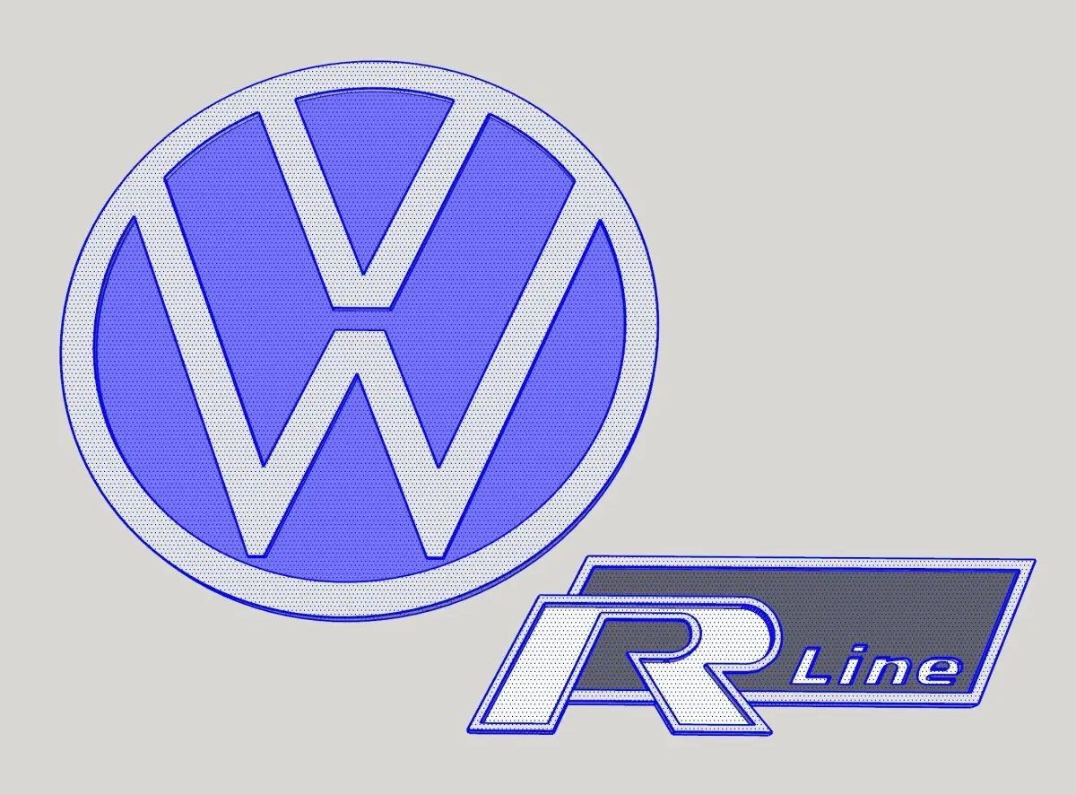 Files for 3D printing the new VW logo with R Line option. Ideal for garage art. See my link at Instructables for how this was made...https://www.instructables.com/id/3D-LED-Garage-Art/