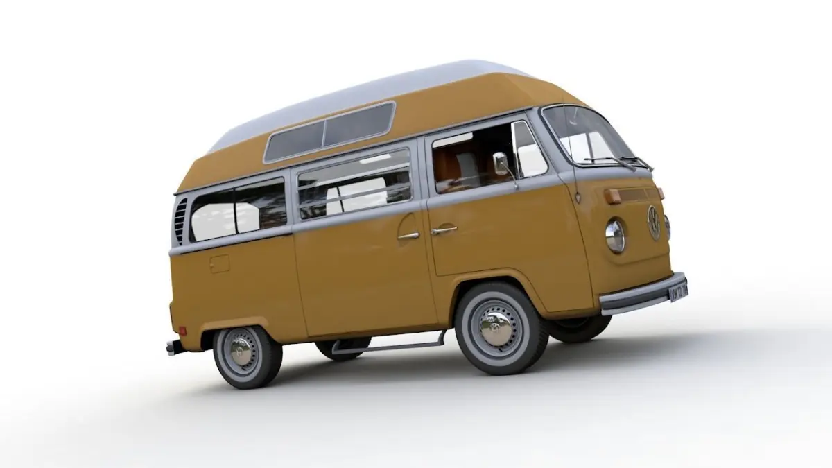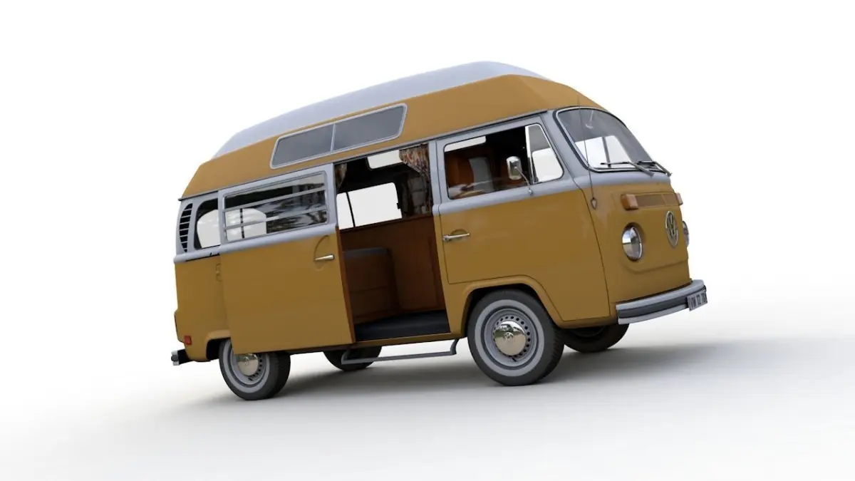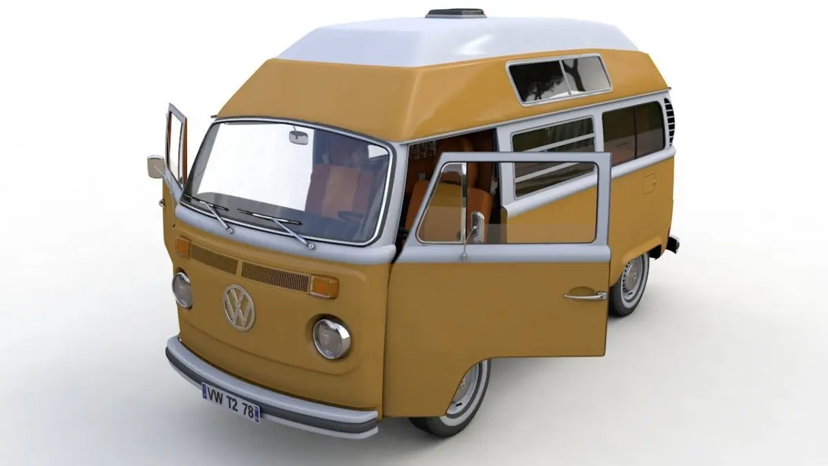 High detailed 3D model VOLKSWAGEN T2 HIGHT TOP SAFARE CAMPER 1974, from inside and outside.