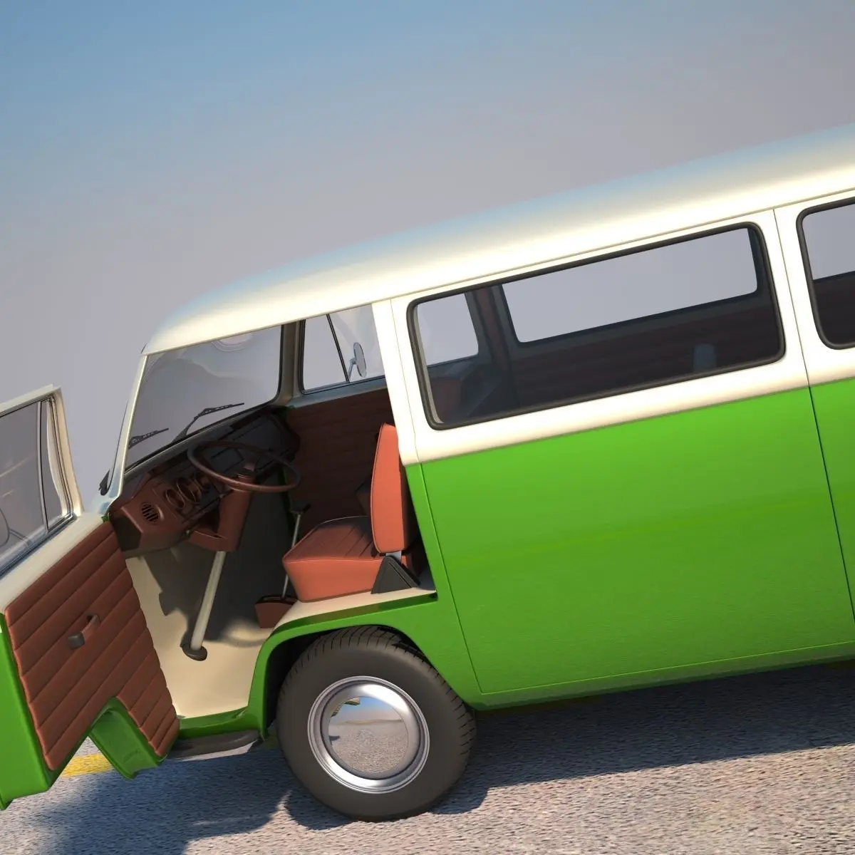 -High detailed model Volkswagen T2 Minibus (second generation; 1967–1979) . -model with turbosmooth iteration 2 can be turn on/off . -real world scale -vray light setup and shader included and ready to render. -textures included. -Body color can be changed -materials and textures, all named intelligently.