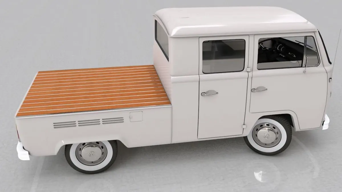 High detailed 3D model VOLKSWAGEN T2 PICKUP DOUBLE CAB - 1974.