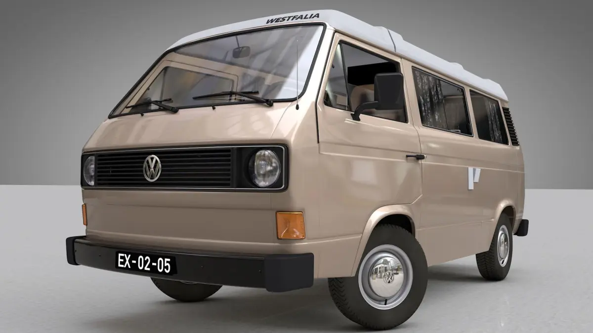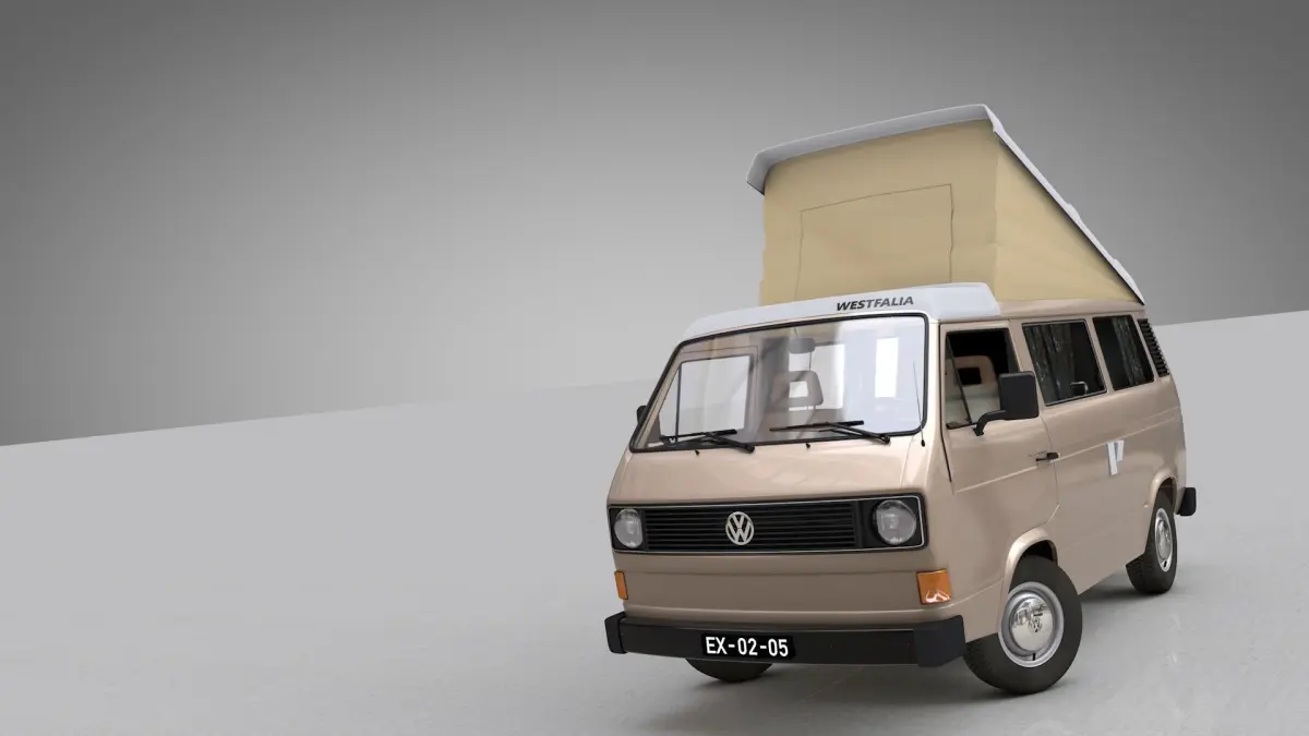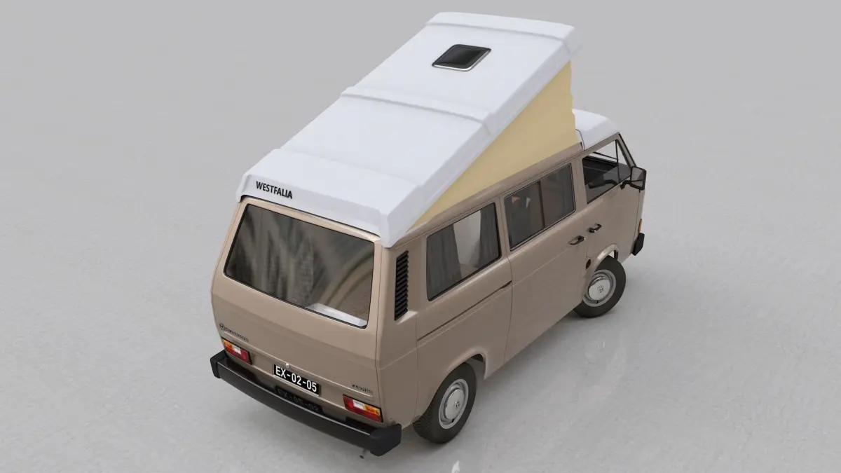 High detailed 3D model VOLKSWAGEN T3 T25 TRANSPORTER CAMPING WESTFALIA JOKER WITH FOLDING ROOF - 1980.
