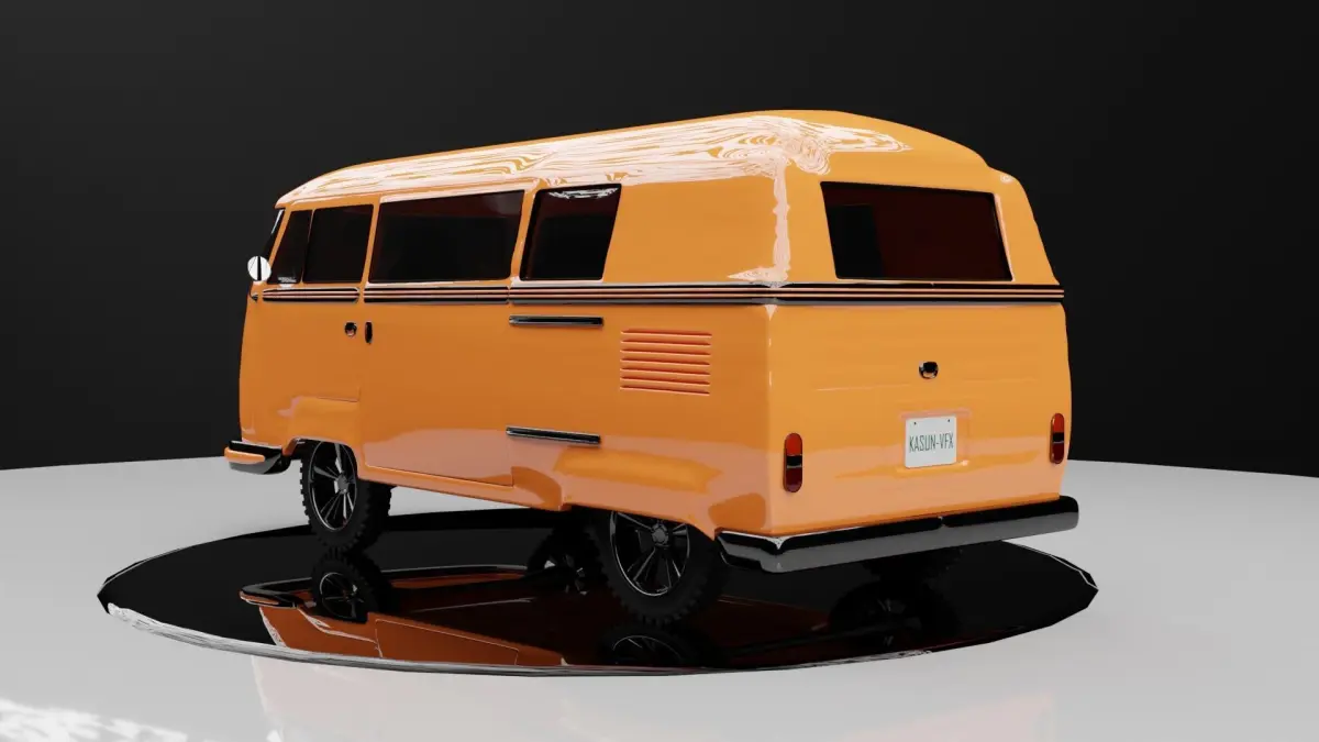 This is a 3D model of a classical vehicle of transporter.& its little bit modified.The windows are transparent.Metal material added for frount & rear bumpers,Head lamp cover,Tail lamp cover,Frount blinker cover,Alloy wheels,Door locks & Side mirrors.