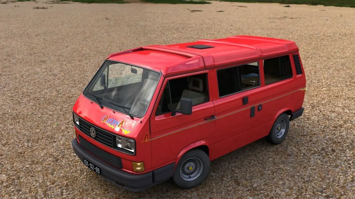 High detailed 3D model VOLKSWAGEN TRANSPORTER T25 T3 CAMPING WESTFALIA CALIFORNIA LOW-TOP 1987, from inside and outside.