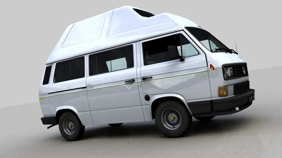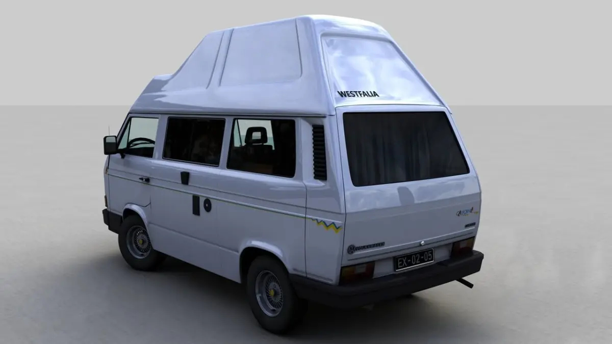 High detailed 3D model VOLKSWAGEN TRANSPORTER T25 T3 CAMPING WESTFALIA CALIFORNIA 1987, from inside and outside.