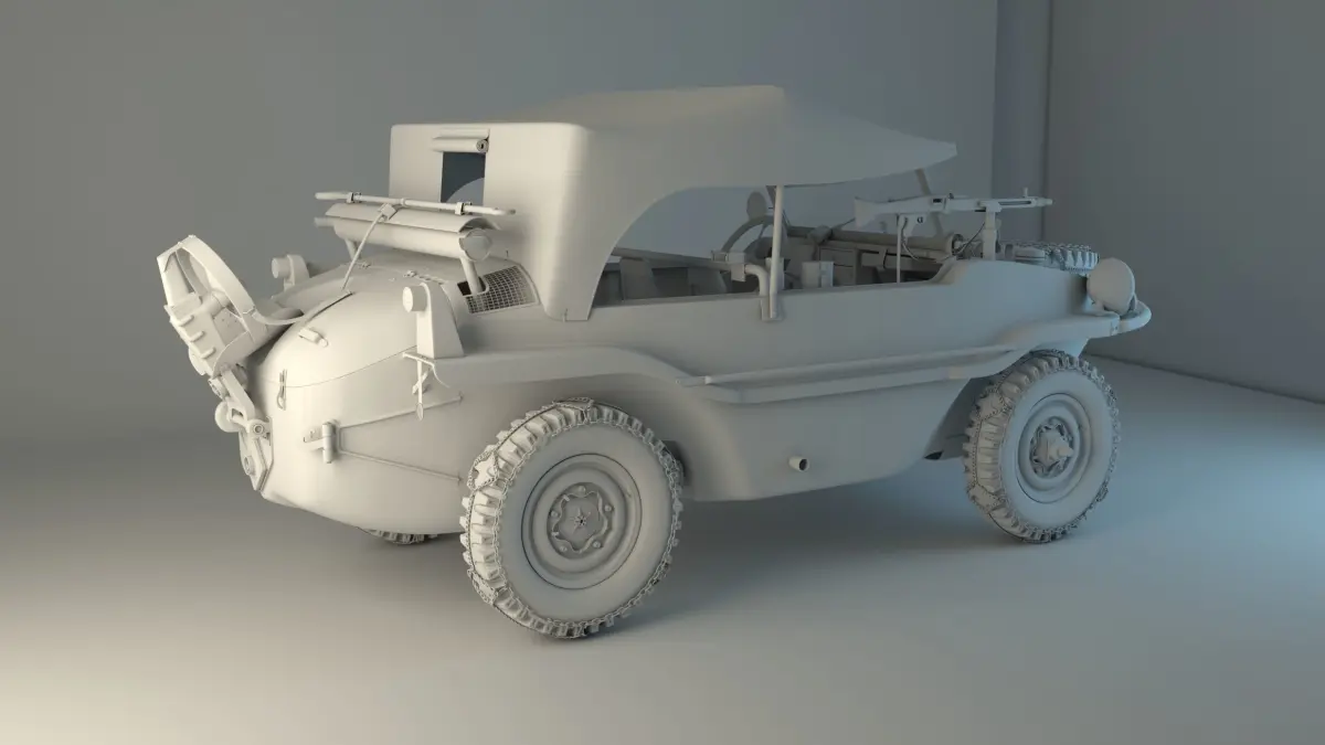VW Schwimmwagens were produced by the Volkswagen factory at Fallersleben / Wolfsburg and Porsche's facilities in Stuttgart; with the bodies (or rather hulls) produced by Ambi Budd in Berlin. 15,584 Type 166 Schwimmwagen cars were produced from 1941 through 1944; 14,276 at Fallersleben and 1,308 by Porsche. Given these numbers, the VW 166 is the most mass-produced amphibious car in history.