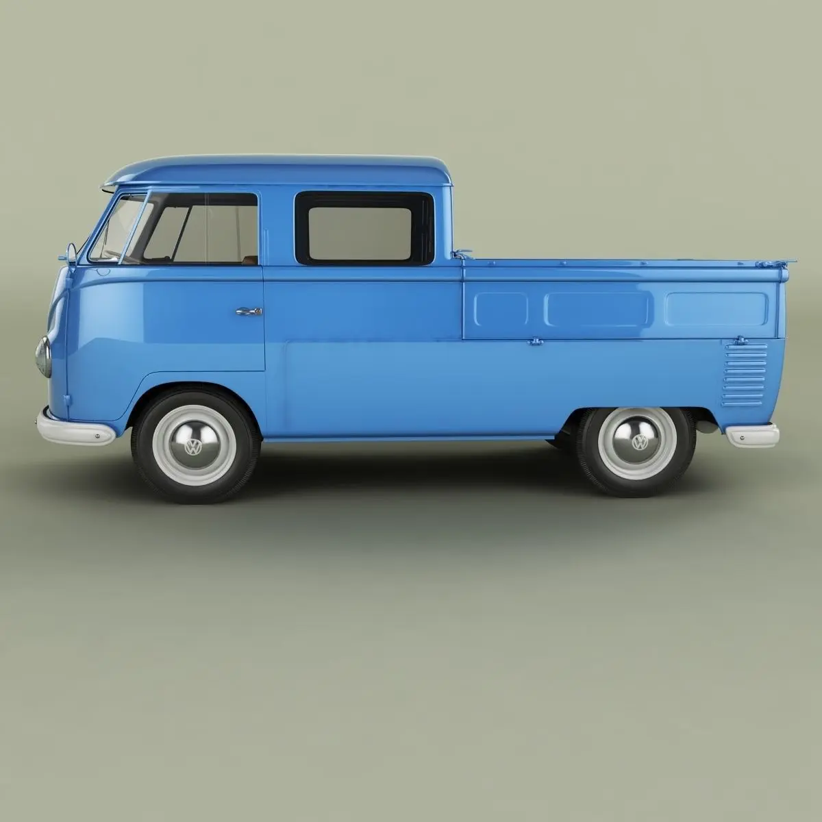 High detailed, correctly scaled model of 1950 Volkswagen Type 2 Double Cab Pickup (Pritschenwagen doppelkabine) T1. Originally created with 3ds Max 8. Rendered with V-Ray, files with standard materials are included. Unit system is set to metric units. Model is built to real-world scale. Geometry is Editable Poly (quads/tris only). TurboSmooth is use separately to objects (76 of 99 named objects) with iterations 2 (1074508 polys, 556339 vert.) Each file was checked before upload. Materials and textures are included ( 4 textures - jpg 1024X1024).