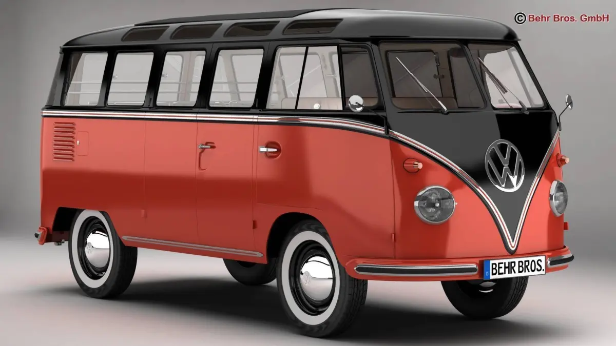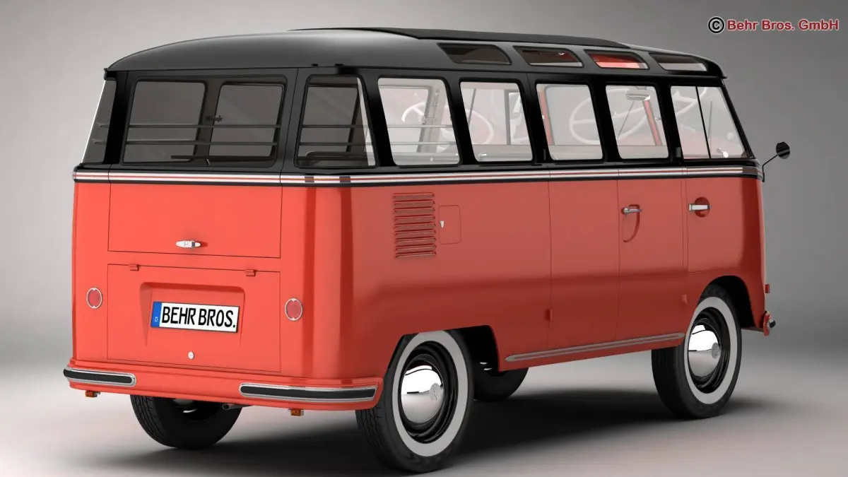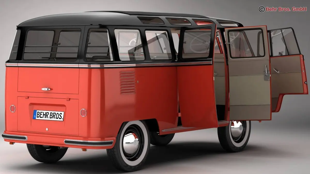 Accurate very high definition Volkswagen Type 2 Samba 1959 model with highly detailed interior fully textured. Headlights and taillights are modelled, doors can be opened. An opened and closed version of the roof is included. The model includes modeled tires.