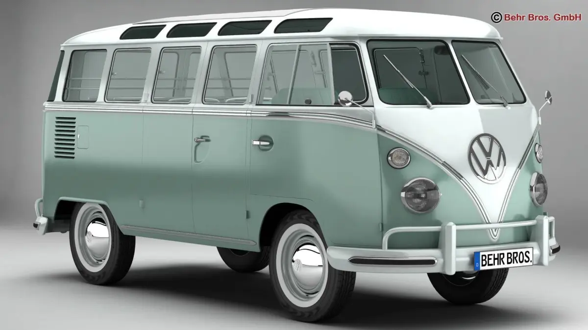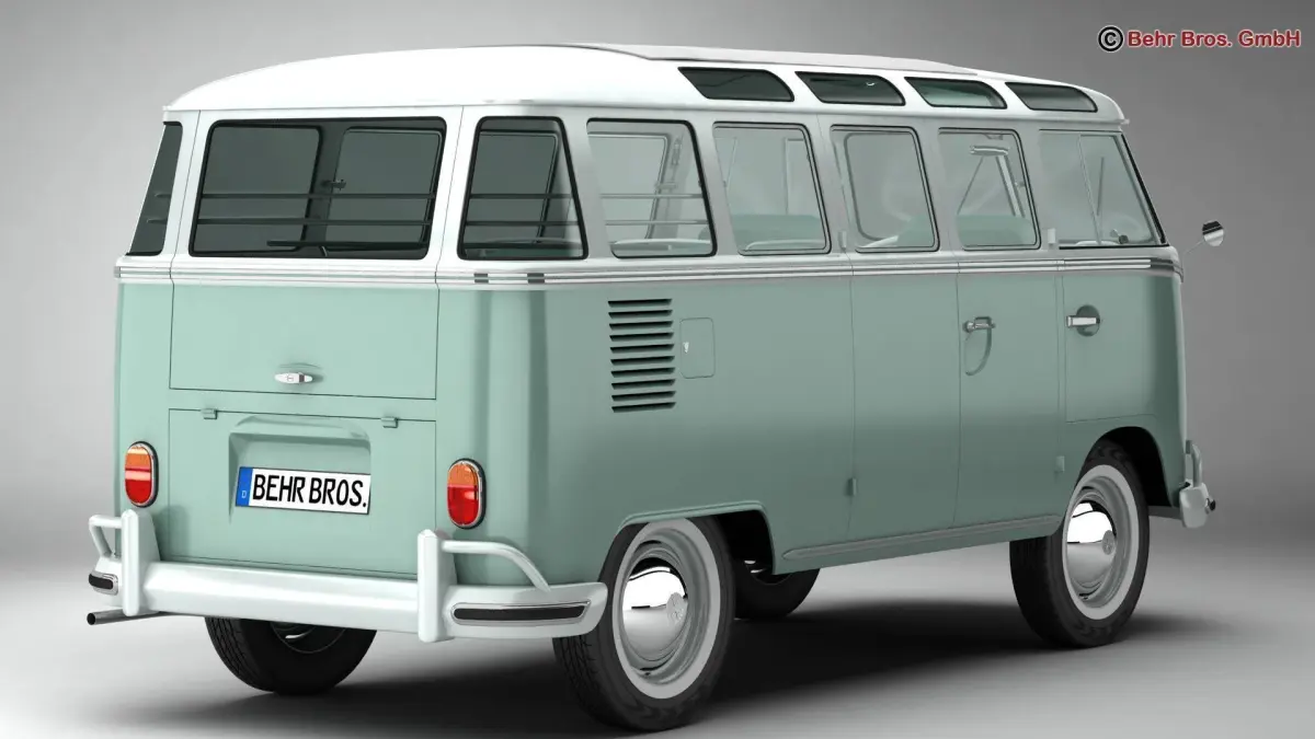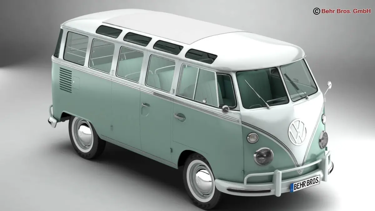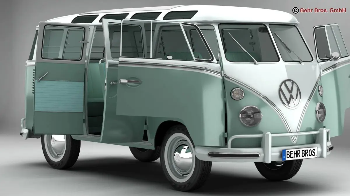 Accurate very high definition Volkswagen Type 2 Samba 1963 model with highly detailed interior fully textured. Headlights and taillights are modelled, doors can be opened. An opened and closed version of the roof is included. The model includes modeled tires.