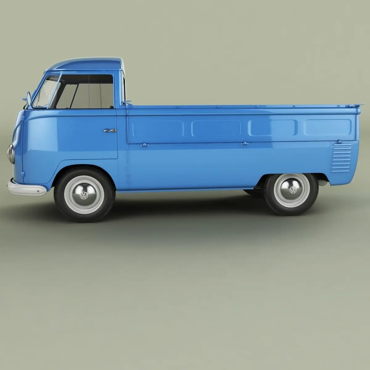 High detailed, correctly scaled model of 1950 Volkswagen Type 2 Single Cab Pickup (Pritschenwagen) T1. Originally created with 3ds Max 8. Rendered with V-Ray, files with standard materials are included. Unit system is set to metric units. Model is built to real-world scale. Geometry is Editable Poly (quads/tris only). TurboSmooth is use separately to objects (71 of 97 named objects) with iterations 2 (991118 polys, 513988 vert.) Each file was checked before upload. Materials and textures are included ( 4 textures - jpg 1024X1024).