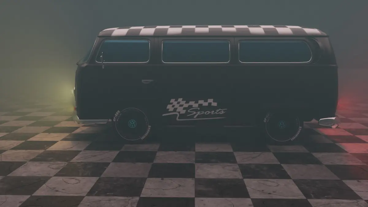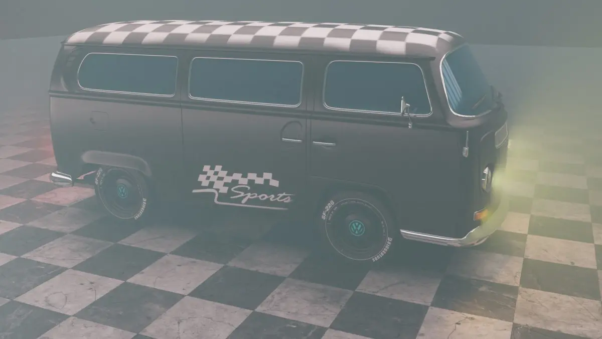 volkswagon type2 with matblack color and sport edition look with paint textures included