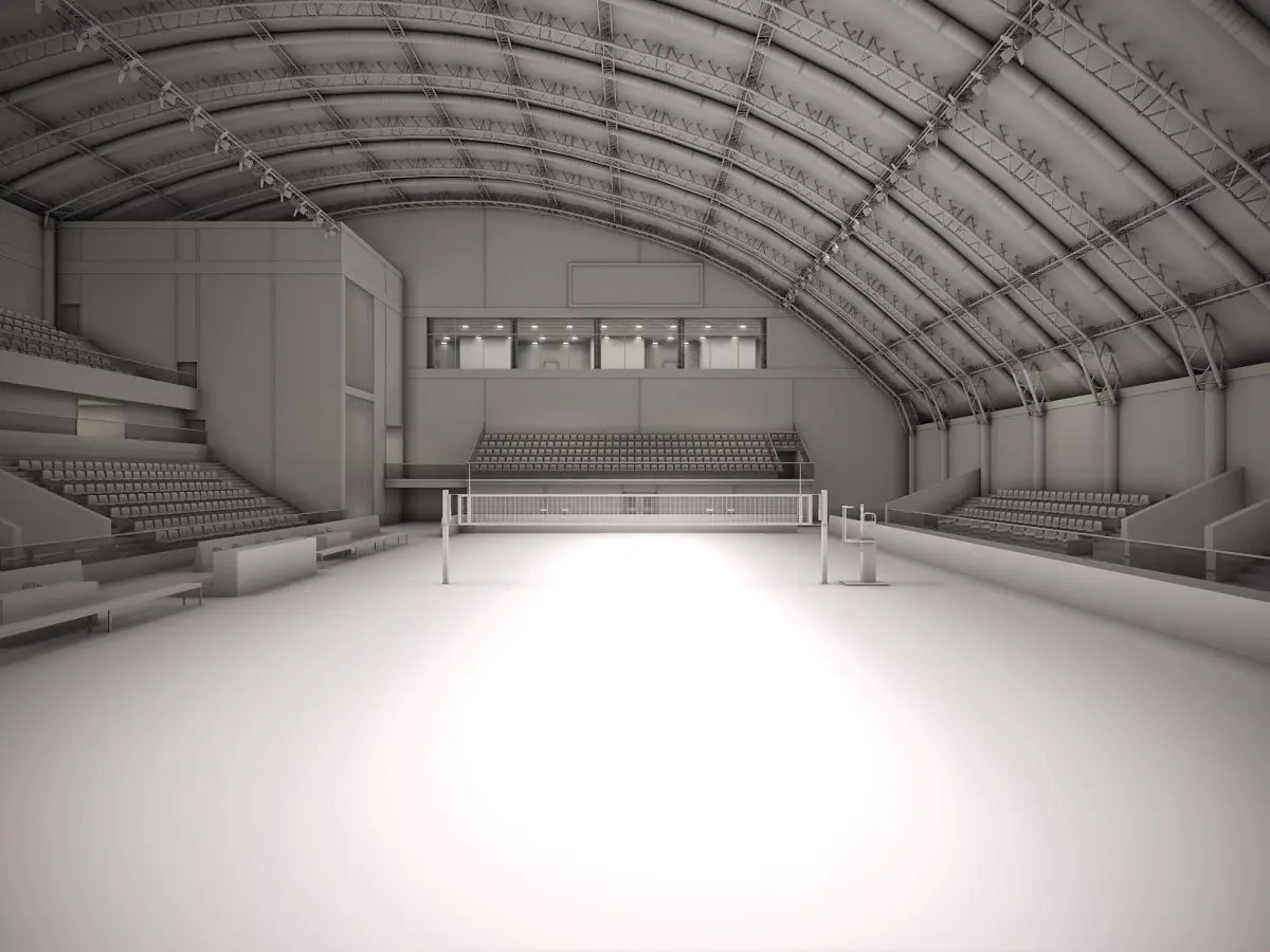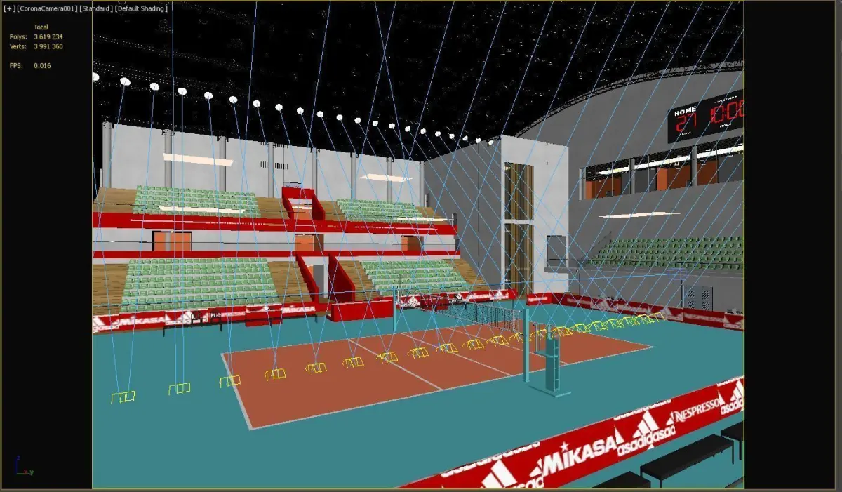 This is a fully textured interior scene of a volleyball court pavilion, ready to render with Corona for 3d Max. Ready for close-ups