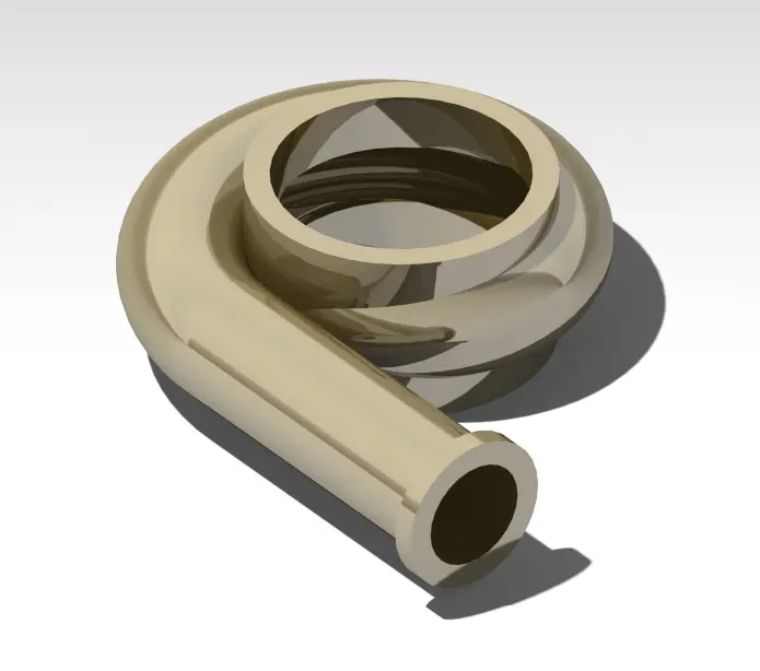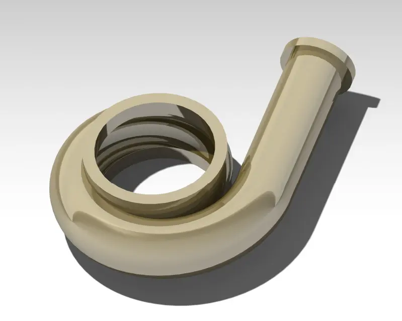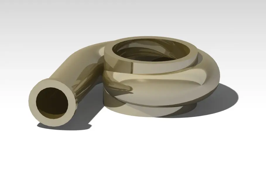 This is a 3D CAD model of a generic volute casing, designed for use in centrifugal pumps or turbomachinery applications. The volute guides fluid from the rotating impeller to the outlet while converting kinetic energy into pressure. This component is critical in fluid systems and commonly used in CFD simulation, flow analysis, and hydraulic design.