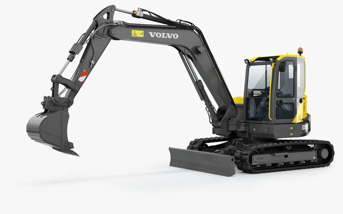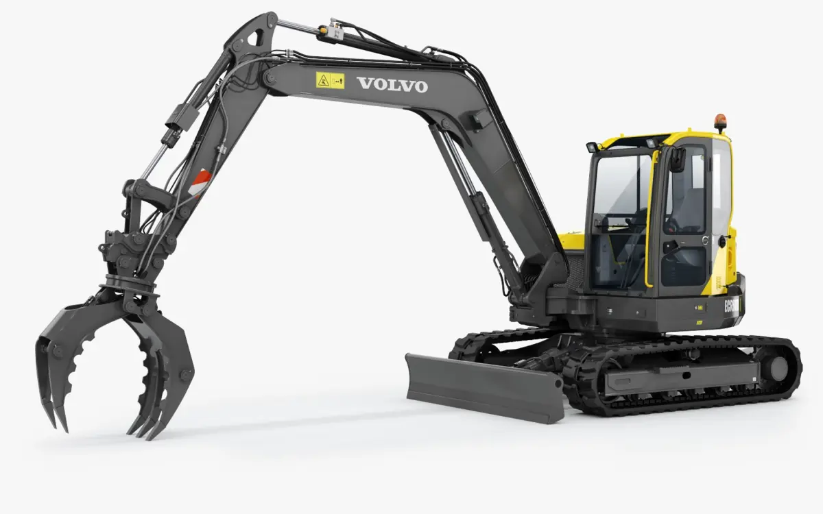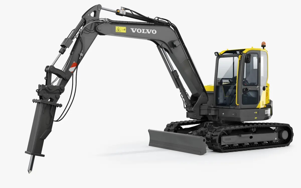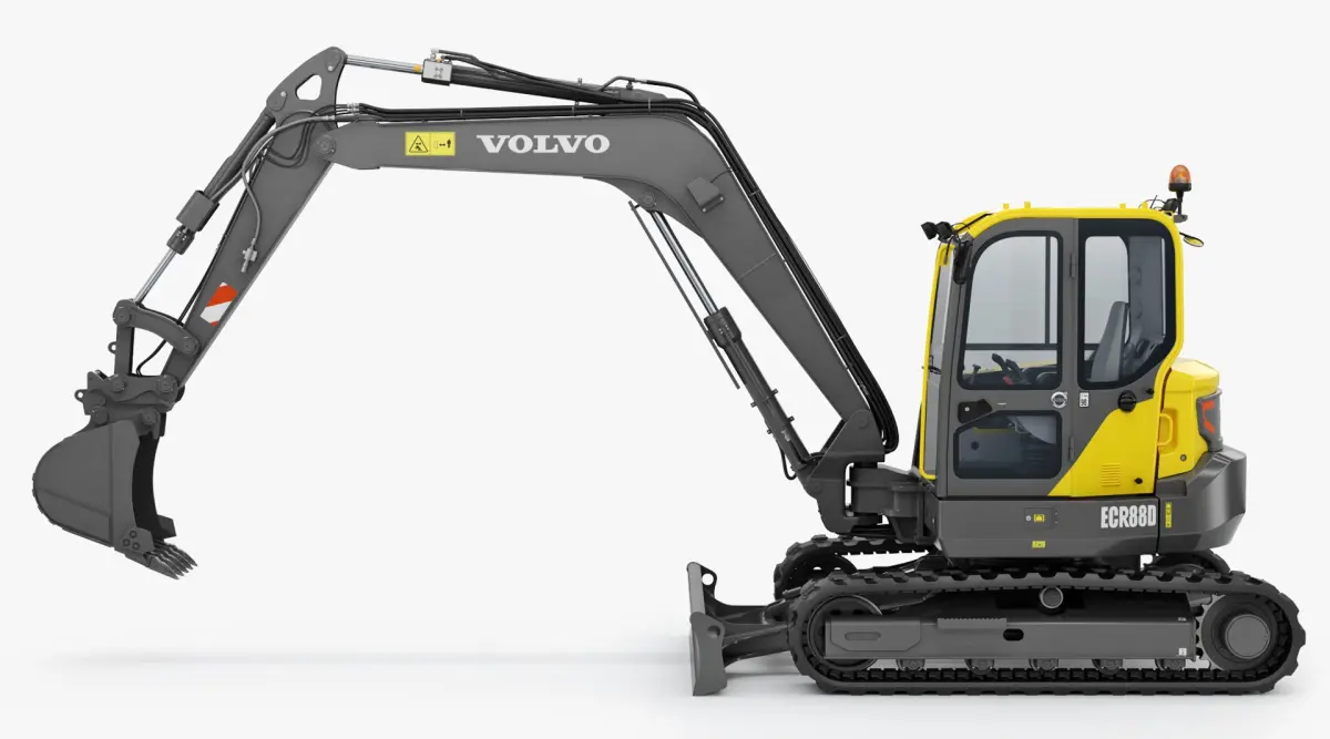 Hitch Detailed and realistic 3d model of Volvo ECR88D compact Excavator and Attachments.