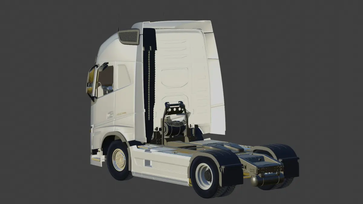 This 3D model of the Volvo FH460 is a faithful representation of the heavy-duty truck, known for its durability and aerodynamic design. The cabin has a modern, streamlined design, with a robust front end and slim LED headlights that highlight its imposing appearance. Details such as the V-shaped grille and aerodynamic mirrors add realism, with large, well-detailed wheels the interior includes a spacious cabin.This model would be perfect for freight transport simulations in industrial environments, logistics and driving animations or video games, or even in infrastructure project presentations. It is also ideal for virtual training for truck drivers or for visualizing loading operations in realistic environments.