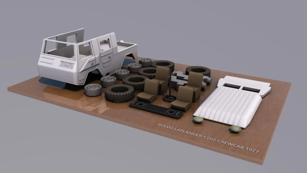VOLVO LAPLANDER C202 CREWCAB 1977 3D PRINT MODEL , WITH DIFFERENT WALL THICKNESS