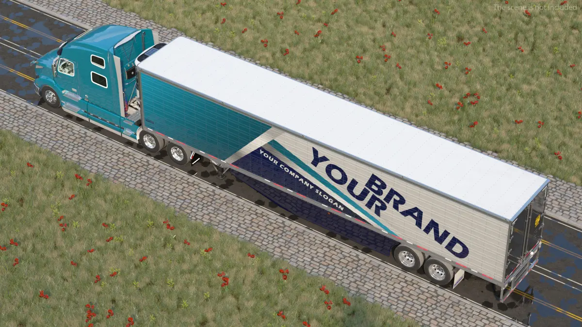 Volvo VNL 860 Truck with Reefer Trailer Your Brand Rigged is a three-dimensional model of a heavy duty, special freight semi-trailer transport vehicle with temperature control equipment.Specialized, heavy duty, large reefer trailer freight vehicle, which designed for frozen transporting of various freight foods, meat, flowers, various beverages and more.For heavy cargo vehicles, refrigerated transport, truck repair works, transport temperature control systems, automotive carrier transport, freight works, freight trucks, heavyweight vehicles, lorry vehicles, food transportation, special automotive carrier equipment, powerful freight transport, cargo vehicles engineering, modern logistics, or heavy duty automotive industry promotional projects.