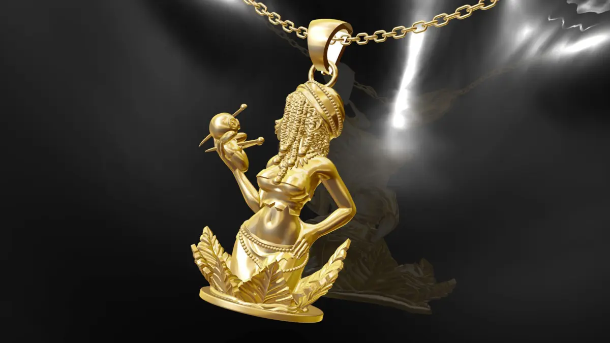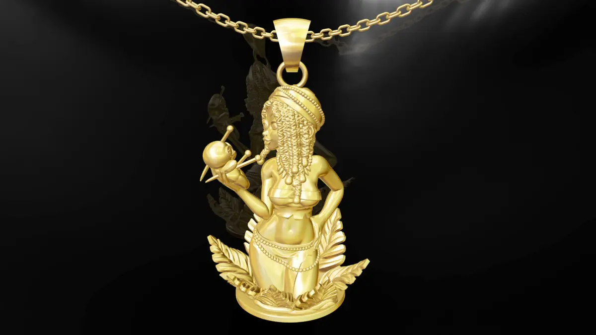 Voodoo Bree statue sculpture pendant jewelry gold