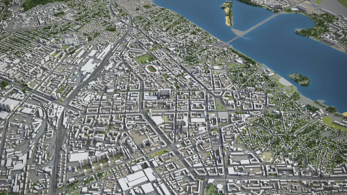- Full city extents up to 100 x 100 km — or crop to an area of interest for better format compability and scene performance