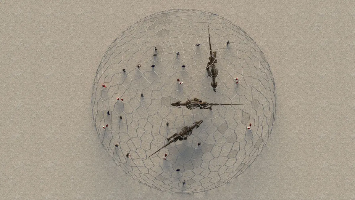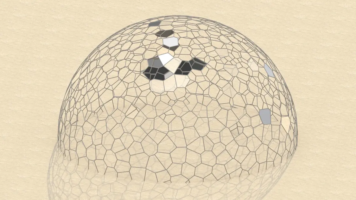 Voronoi Dome made with grasshopper plugin in Rhino 3D. Dinosaurs and people are not included.