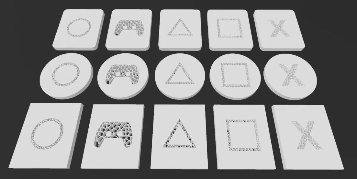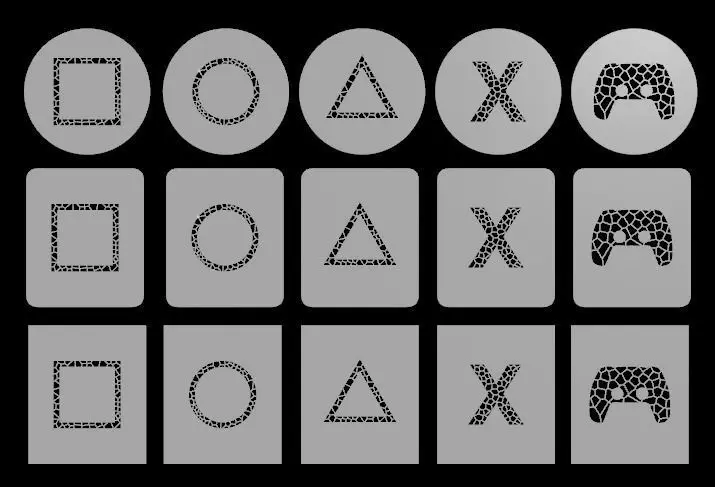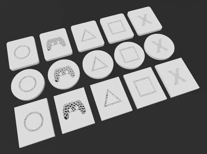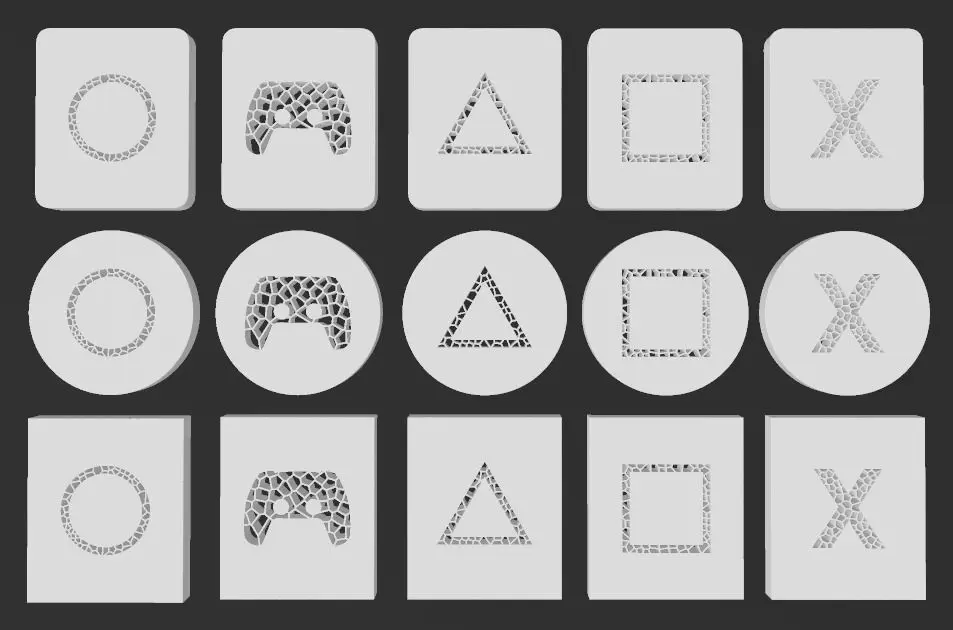 Five different Voronoi Video Gaming icons, different Minimalist designs that resemble the buttons of the game controller icons. Ready for 3d printing with clear eye catching design, The design is simple and does not contain many details that distract the eye, which makes it attractive and suitable for various use cases in many places. Voronoi patterns make the design look more natural and also more visually interesting for various decorative purposes. You can install it on the wall, doors, products or any flat surface.