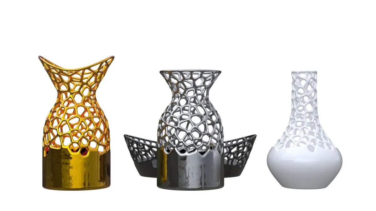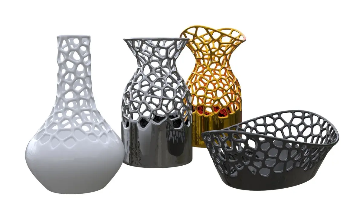 Four voronoi pattern vases with four different forms, created using computational parametric tools to achieve the most accurate geometry with clean details, they could be used for architectural render purposes indoors and outdoors, and also for interior and decoration purposes, the two models could be 3d printed and come to live in scale 1:1 using the included STL files.