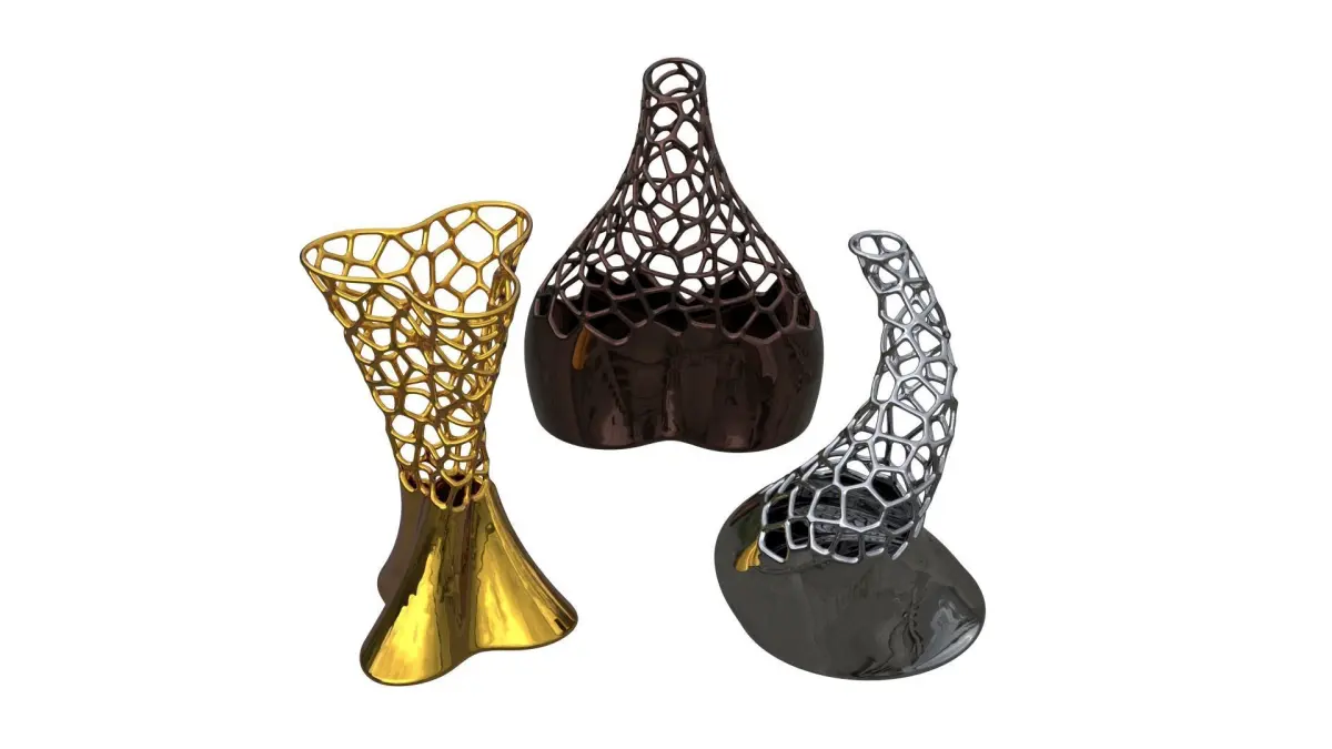 Three Organic Sculptures with different Voronoi Cells forms, created using computational parametric tools to achieve the most accurate geometry with clean details, they could be used for architectural render purposes indoors and outdoors, and also for interior and decoration purposes, the two models could be 3d printed and come to live in scale 1:1 using the included STL files.