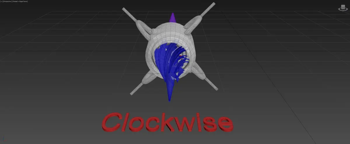 Three versions, one clockwise, one counter spinning, and one counter clockwise for balancing of forces.