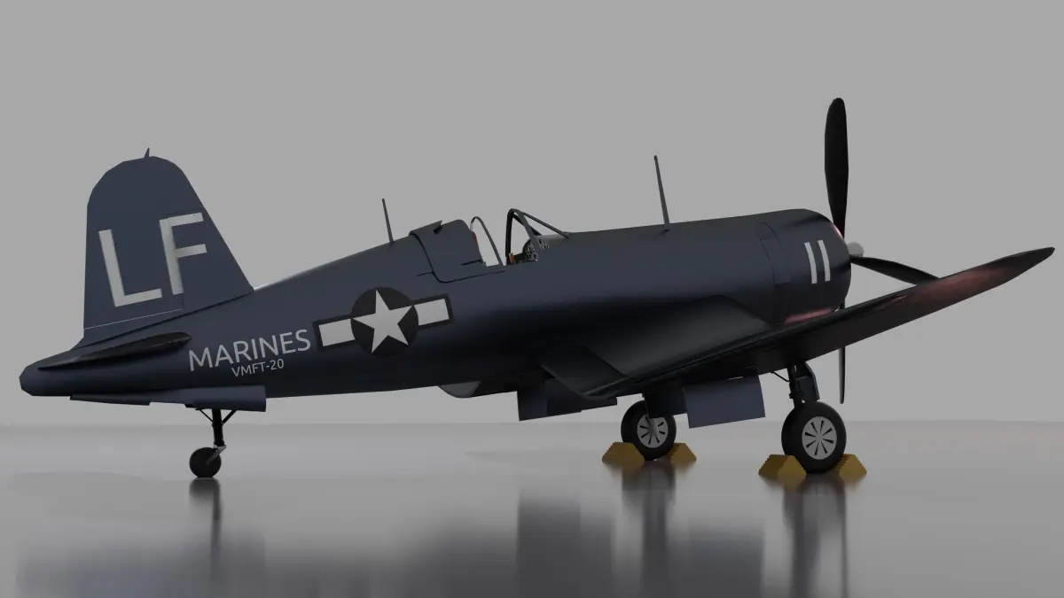 The F4U was a Naval fighter in WW2 which played a major role in close ground support and fighter missions. This model comes with a fair amount of cockpit detail and a detailed engine. The guns and ammo boxes are also modeled. It is not rigged but all the parts are categorized for convenience.