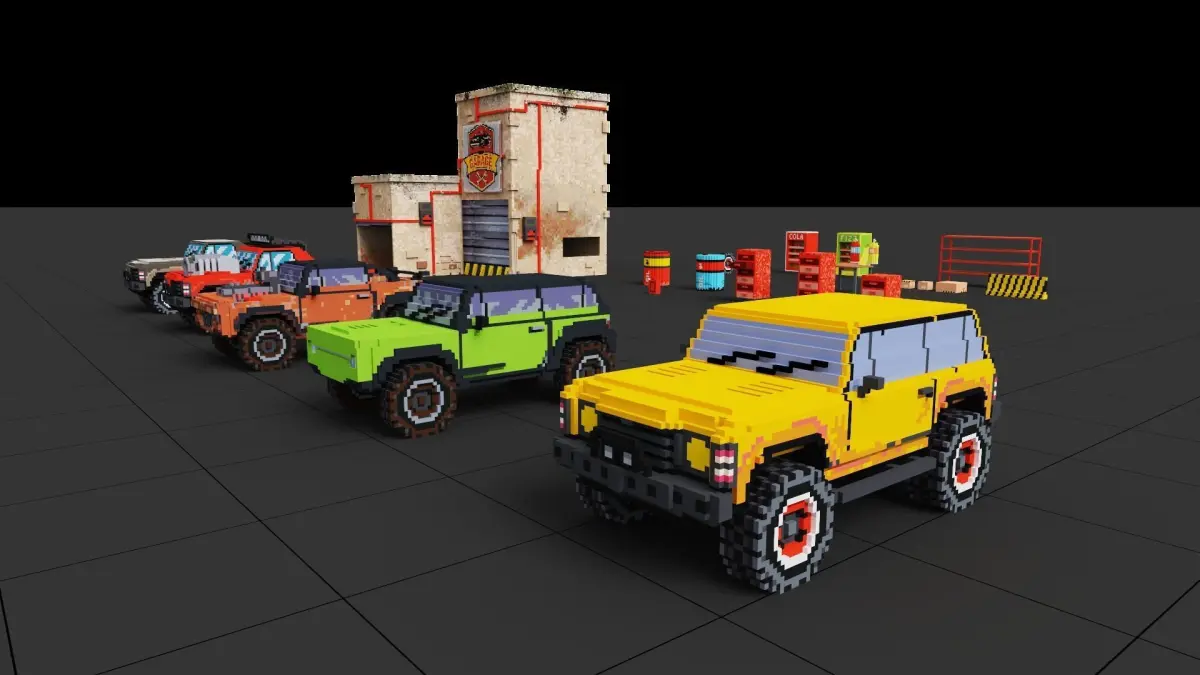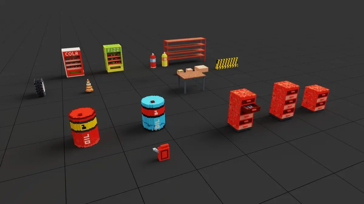 Versatile Car Models: Dive into our collection of five unique voxel-style car models, each boasting textures ready for customization. These models are perfect for genres spanning racing, city simulations, and adventure gaming. Easily adapt colors and details to match your project's theme.Industrial & Urban Props: Enhance your virtual worlds with our set of 19 prop elements. This diverse range includes industrial essentials like oil drums, gas tanks, and road dividers, alongside everyday items such as tables, boxes, and a voxel-style garage building. Each prop is designed for visual appeal and customization flexibility.Genre-Spanning Utility: Ideal for game developers aiming to build immersive urban scenes or mechanical-themed settings. The pack's versatility makes it a perfect fit for a variety of gaming genres, from fast-paced racing to detailed city-building simulations.This collection is not just a set of models but a toolkit for game developers seeking to infuse their projects with unique, pixel-art charm, backed by the convenience of FBX format and the versatility for a wide array of gaming genres.